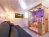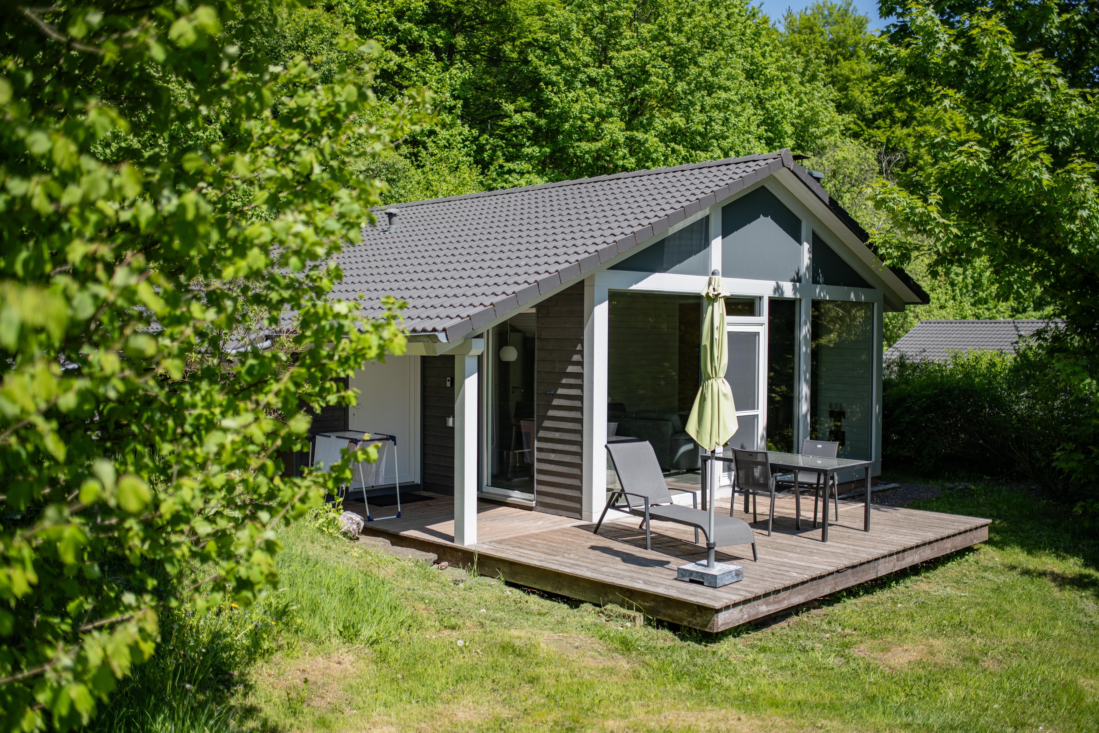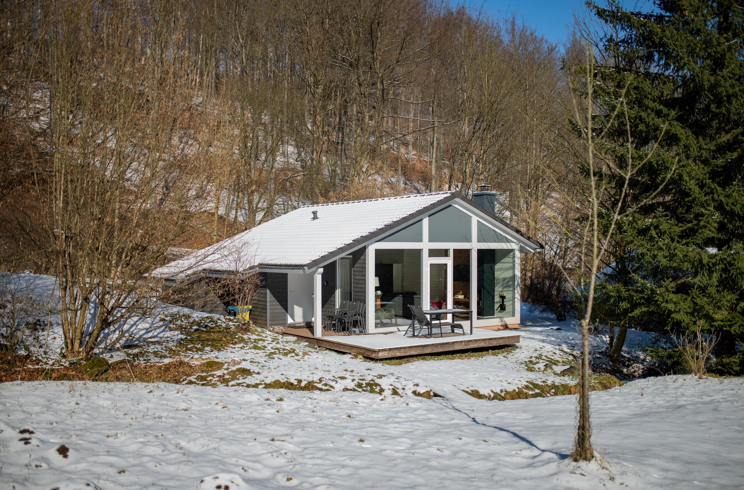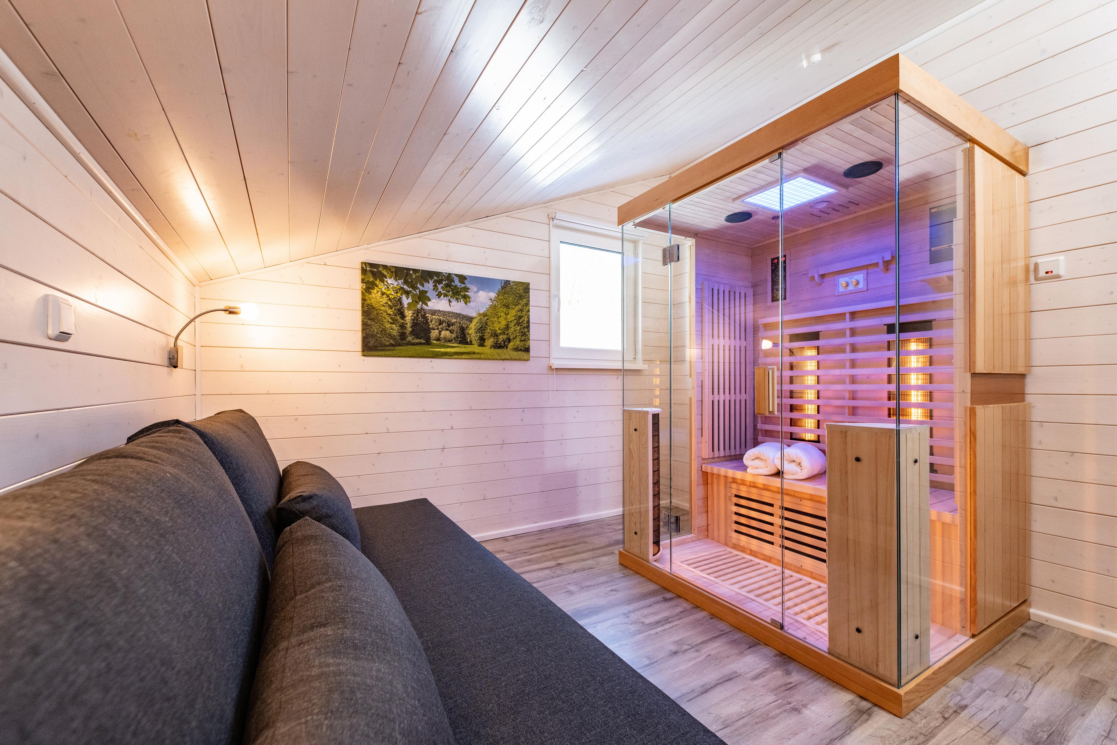 Das Ferienhaus mit einem lichtdurchluteten offenen Wohn- und Küchenbereich, zwei Schlafzimmern, einem Wellnessraum mit Infrarotkabine (Infrarotsauna) und einem Bad bietet Ihnen auf 70 Quadratmetern ausreichend Platz für 4 Personen. Die 7 Meter breite Glasfront lässt die Natur beim Essen oder Relaxen teilhaben. In der kalten Jahreszeit vollendet das knisternde Kaminfeuer das Urlaubsfeeling.