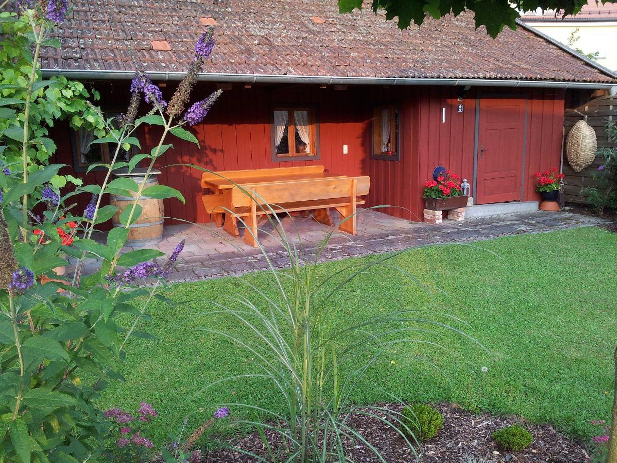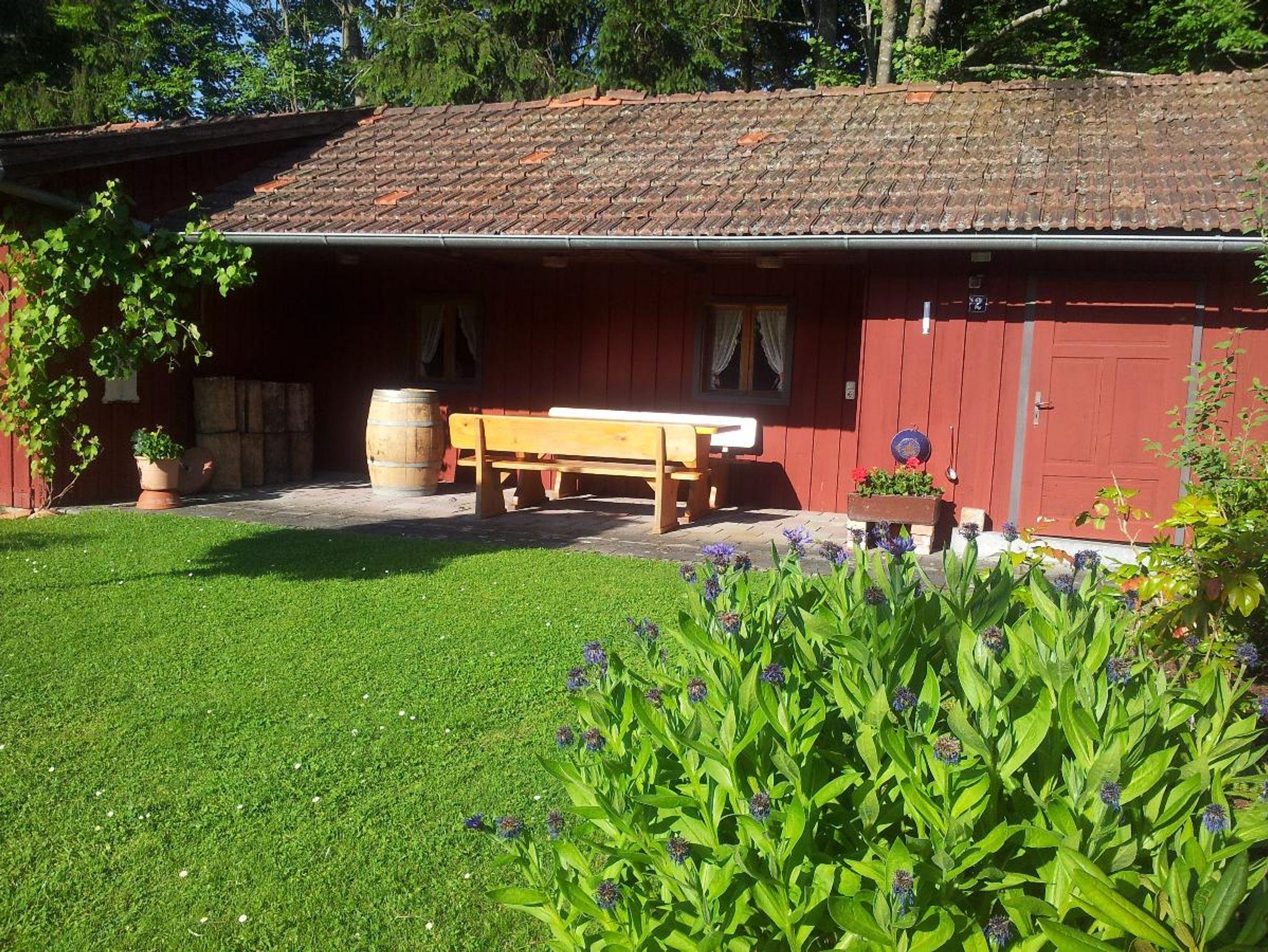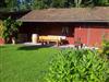 Im Garten befindet sich eine große Liegewiese sowie ein Gartenhaus für gemütliche Grillabende.