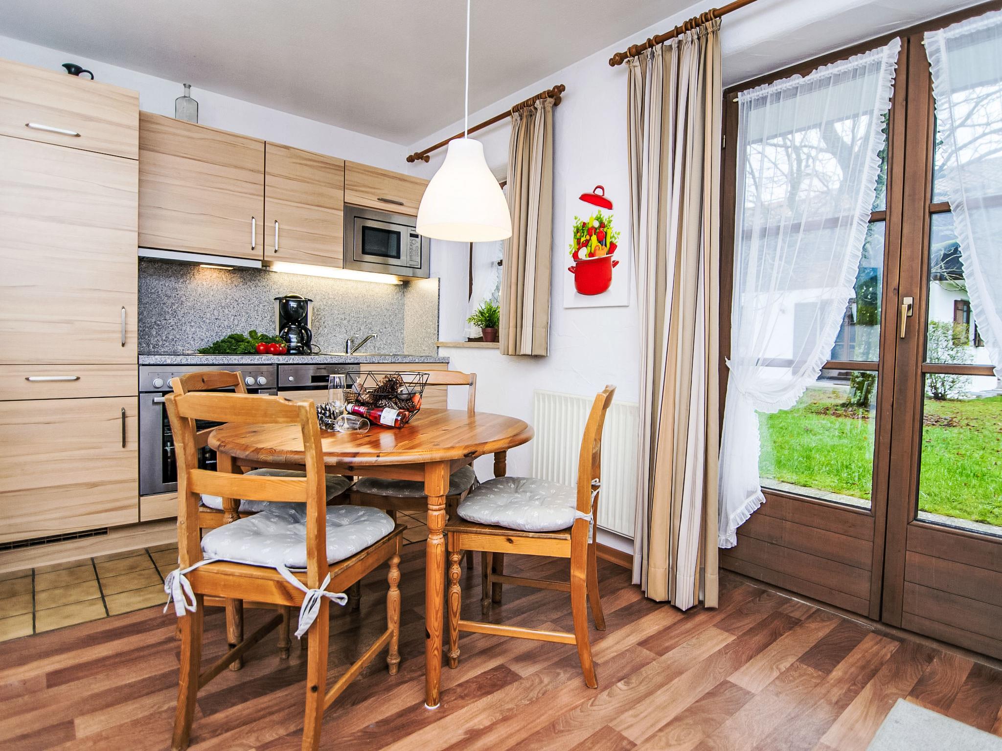 "Wohnung 5 (Am Sonneneck)", 2-room apartment 50 m2, on the ground floor. Beautiful and cosy furnishings: living/dining room with 1 double sofabed (160 cm, length 200 cm), cable TV (flat screen). Exit to the terrace. 1 double bedroom. Exit to the terrace. Kitchenette (oven, dishwasher, 4 ceramic glass hob hotplates, microwave, electric coffee machine). Shower/WC. Terrace furniture. Facilities: children's high chair, baby cot, hair dryer. Internet (WiFi, free). Please note: non-smokers only. Smoke alarm.