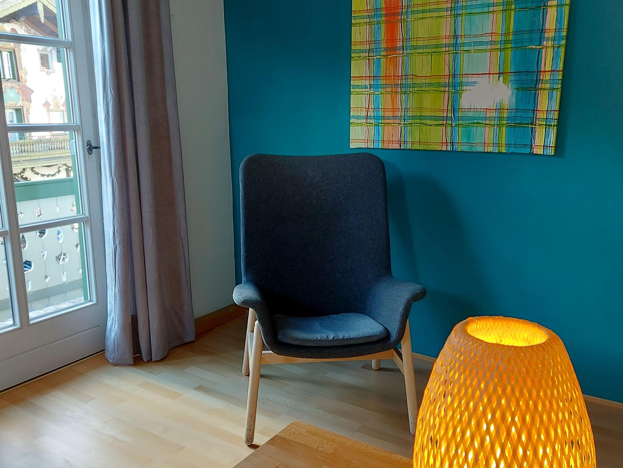 Für alle Gäste steht der gemütliche Aufenthaltsraum mit Westbalkon zur Verfügung, um noch die Abendsonne zu genießen, die Aktivitäten im Dorf zu beobachten oder sich mit anderen Ferienwohnungsgästen auszutauschen.