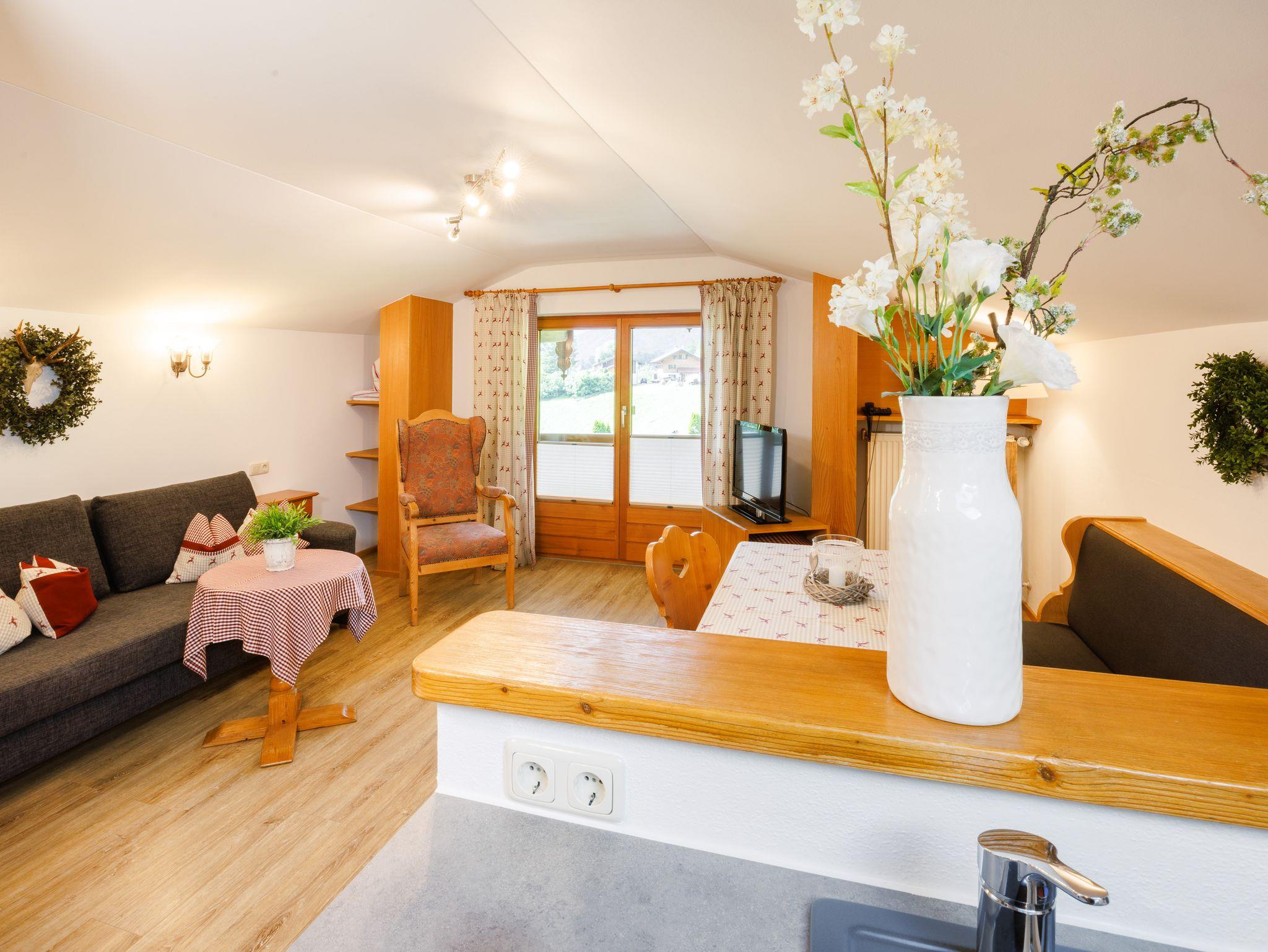 Lohener Hof - Ferienwohnungen Gastager, 6. Ferienwohnung Unternberg, 50qm, Balkon, Küche, 1 Schlafzimmer, 1 Wohnzimmer