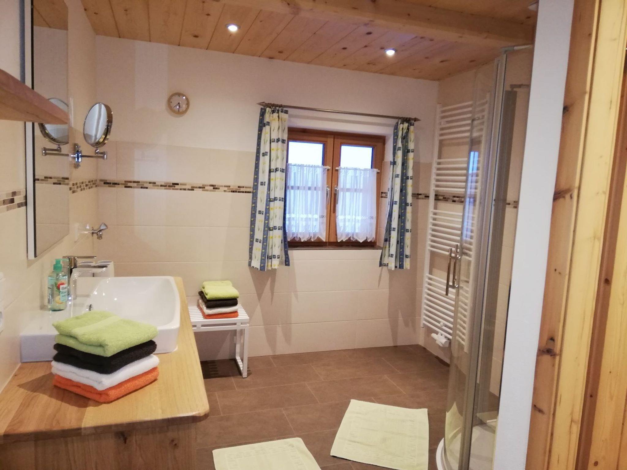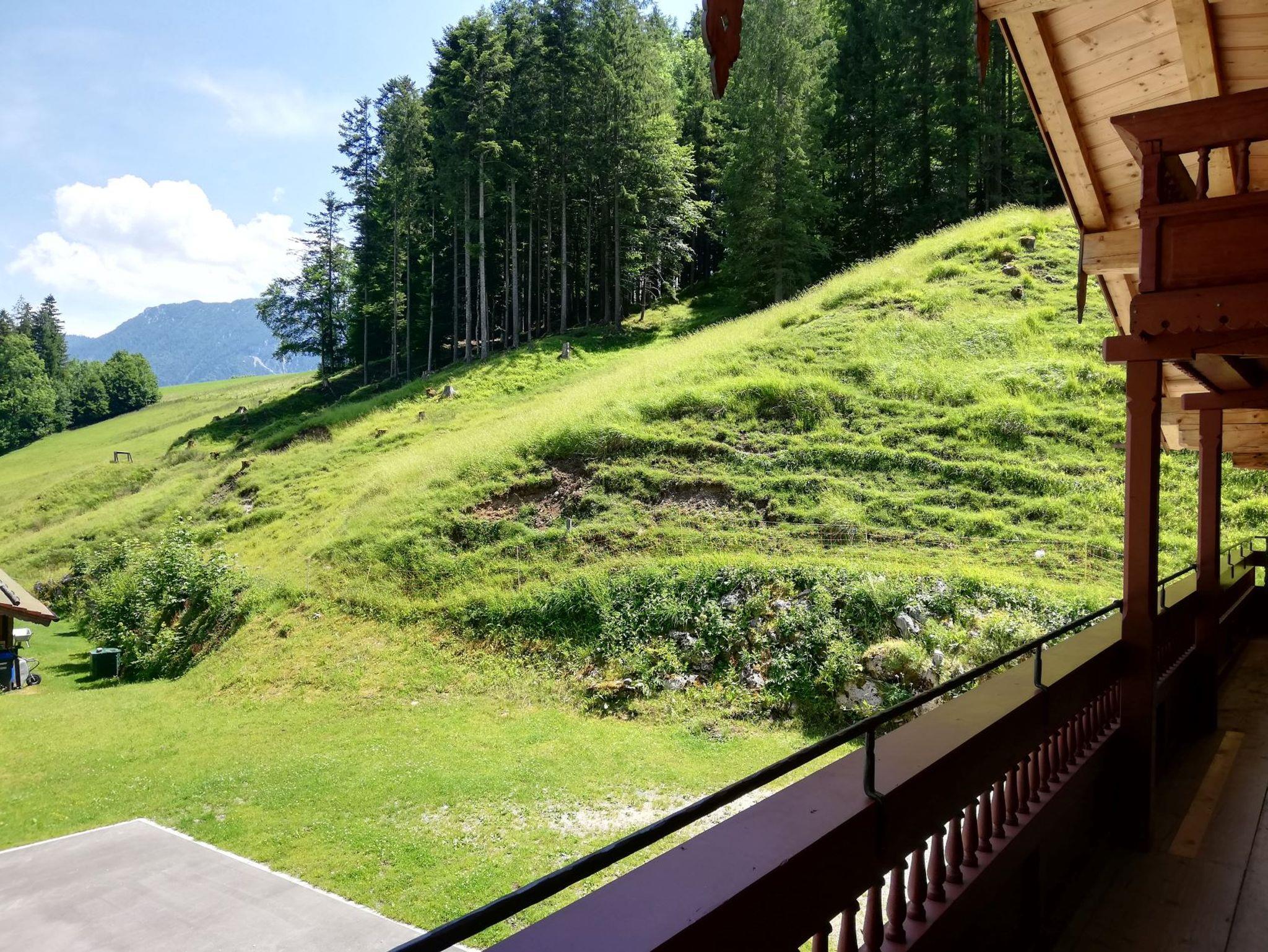 In einem romantischen Tal, umgeben von Wald und Wiesen und doch nur 2 km vom Zentrum Ruhpoldings entfernt, liegt unser historischer ehemaliger Bauernhof, welcher ca. 1750 erbaut wurde. Die nächste Bushaltestelle ist 800 m entfernt.Im denkmalgeschützten, liebevoll restaurierten ersten Obergeschoss befindet sich die, geräumige und gemütliche Ferienwohnung mit ca. 80 m² Wohnfläche für 2 - 5 Personen.Die liebevoll eingerichtete Wohnung bietet ein Doppelschlafzimmer sowie weiteres Schlafzimmer als Kinderzimmer mit Etagenbett, das untere Bett ist 1,40 Meter breit und das obere Bett mit Normalbreite (90 cm), Wohnzimmer mit gemütlicher Couch (ausziehbar) und SAT-TV, komplett ausgestattete Küche mit Essbereich, Bad mit ebenerdiger Dusche, sep. WC und 2 Balkone (einer mit Fernsicht und Blick in die Natur und einer komplett überdacht und wettergeschützt). Des Weiteren bieten wir unseren Gästen einen abgetrennten Gartenbereich mit Sitzgruppe, Sonnenliegen und Sandkasten. Lauschen Sie dem plätschern des Baches, dem Zwitschern der Vögel und beobachten Sie unsere Schafe, die neben dem Haus am Hang weiden. So können Sie sich von der Hektik des Alltags erholen! Familien mit Kindern sind bei uns herzlich willkommen! Ein Kinderbett und Hochstuhl stellen wir Ihnen kostenlos zur Verfügung. Bettwäsche und Handtücher stellen wir gerne zur Verfügung.