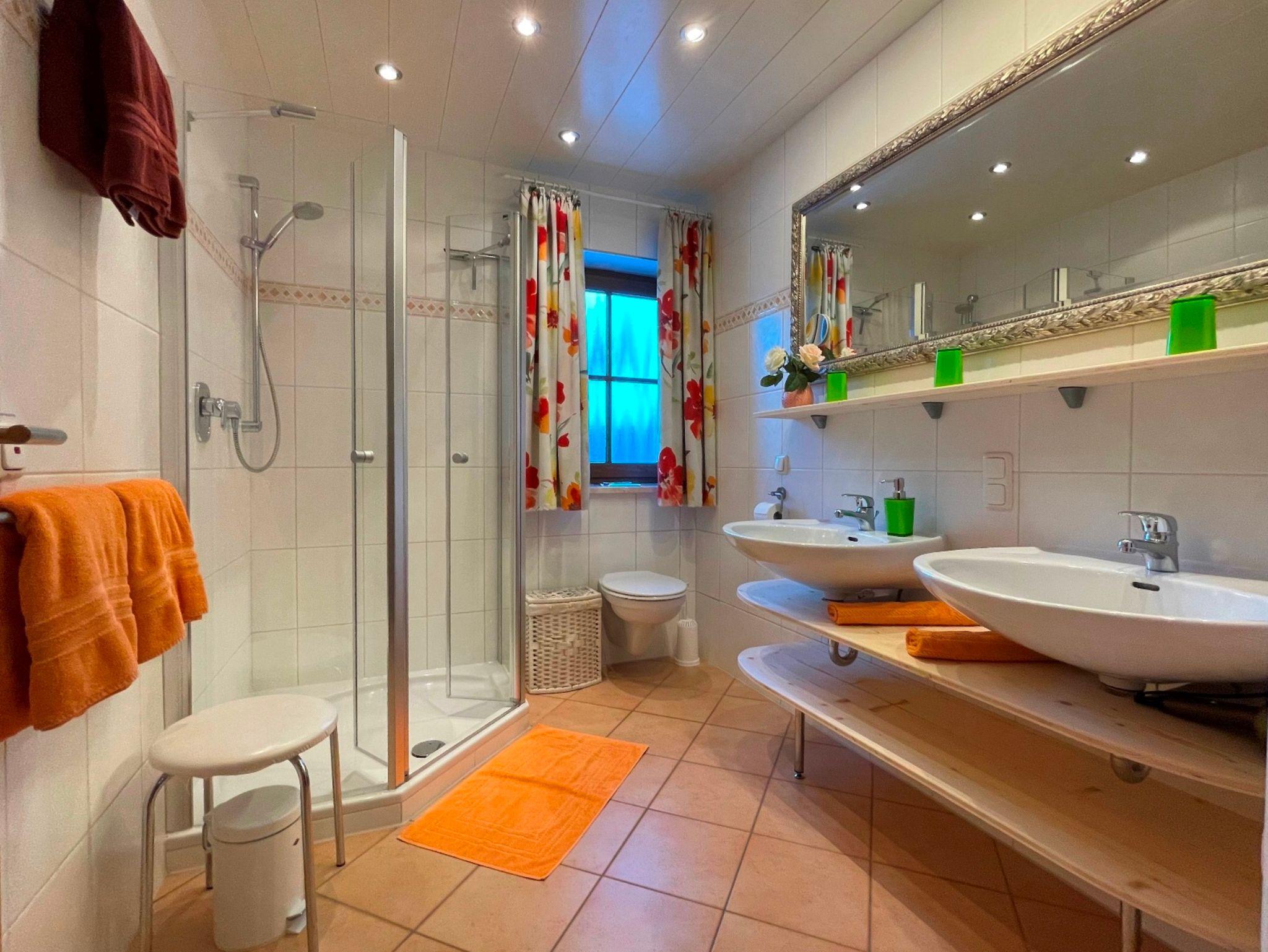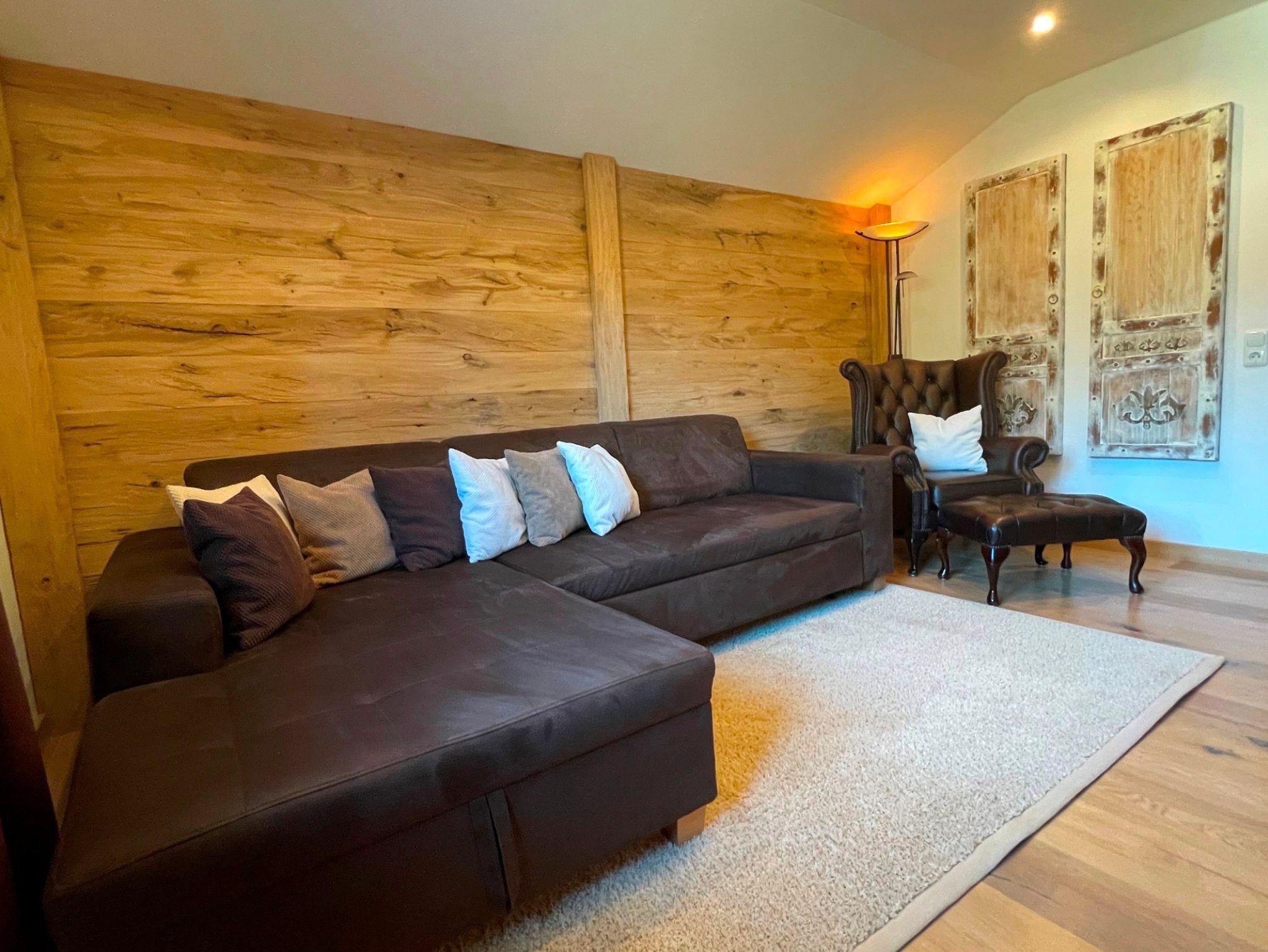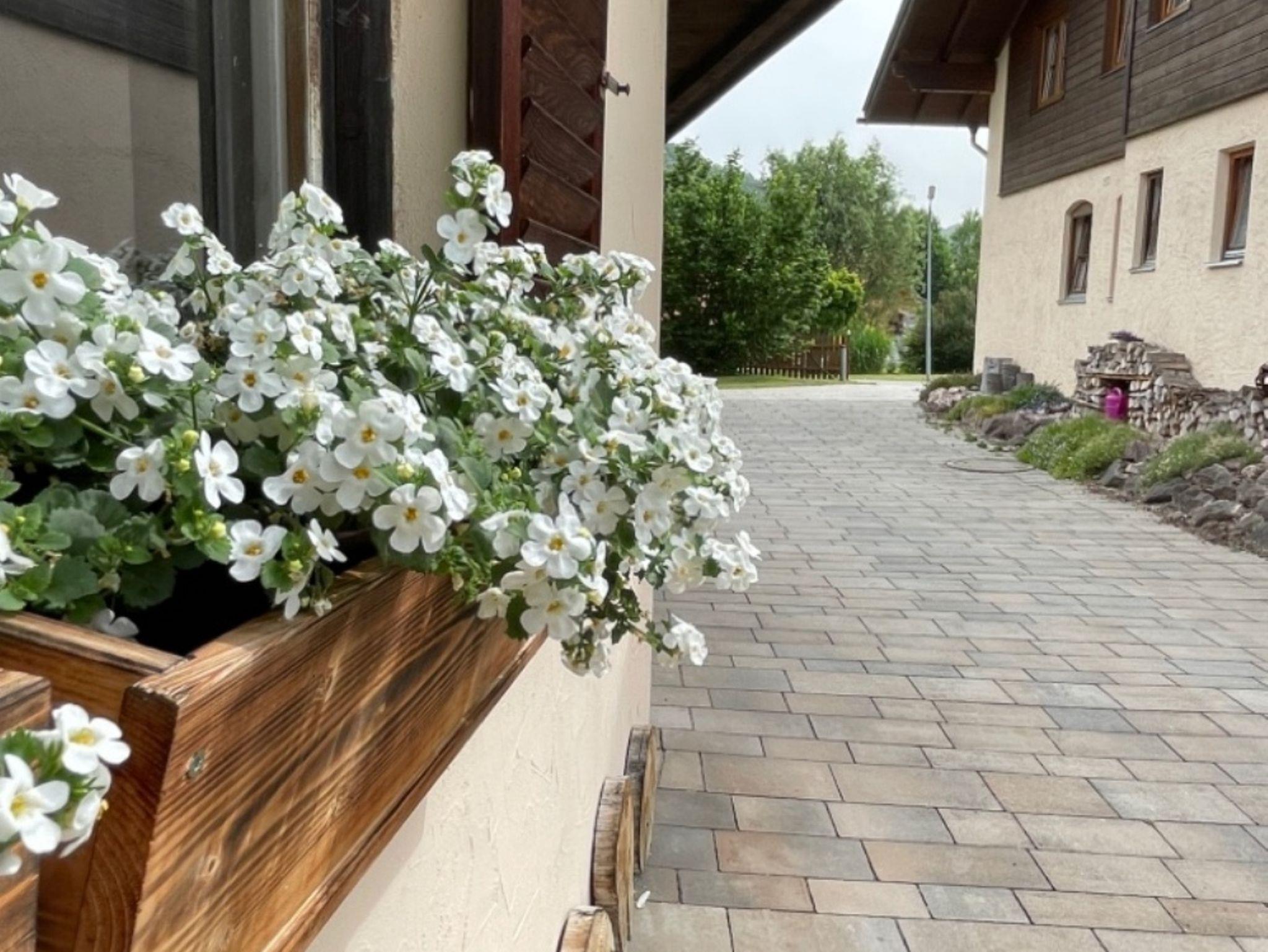 Hell und freundlich haben wir für unsere Gäste die Wohnung mit komfortabler Ausstattung geschaffen. Sie haben freien Blick auf unsere imposanten Hausberge und satte Wiesen. Beide Schlafzimmer sind großzügig gestaltet und für Allergiker geeignet. Sanitärbereich mit Fußbodenheizung, einem 2. Waschbecken und einem extra WC. Der geräumige Wohn-/Essbereich ist mit hochwertigem Inventar eingerichtet und die Küche komplett ausgestattet (Spülmaschine, Backofen, Microwelle, Kaffeevollautomat (Bohnen werden zur Verfügung gestellt), Wasserkocher, Toaster, Eierkocher) und die gemütliche Sitzecke mit einem extra großen Ohrensessel lädt zum Verweilen ein. Von beiden Schlafzimmern aus gelangen Sie auf den uneinsehbaren Balkon (Westseite). Auch für unsere kleinen Gäste ist gesorgt mit Hochstuhl, Kinderbett, Geschirr und Besteck. Geschirrtücher und Handtücher sind in ausreichender Anzahl vorhanden, bei einem längeren Aufenthalt stellen wir eine 2. Garnitur an Bettwäsche kostenlos zur Verfügung. Bügelbrett und Bügeleisen stehen in der Wohnung zur freien Verfügung.