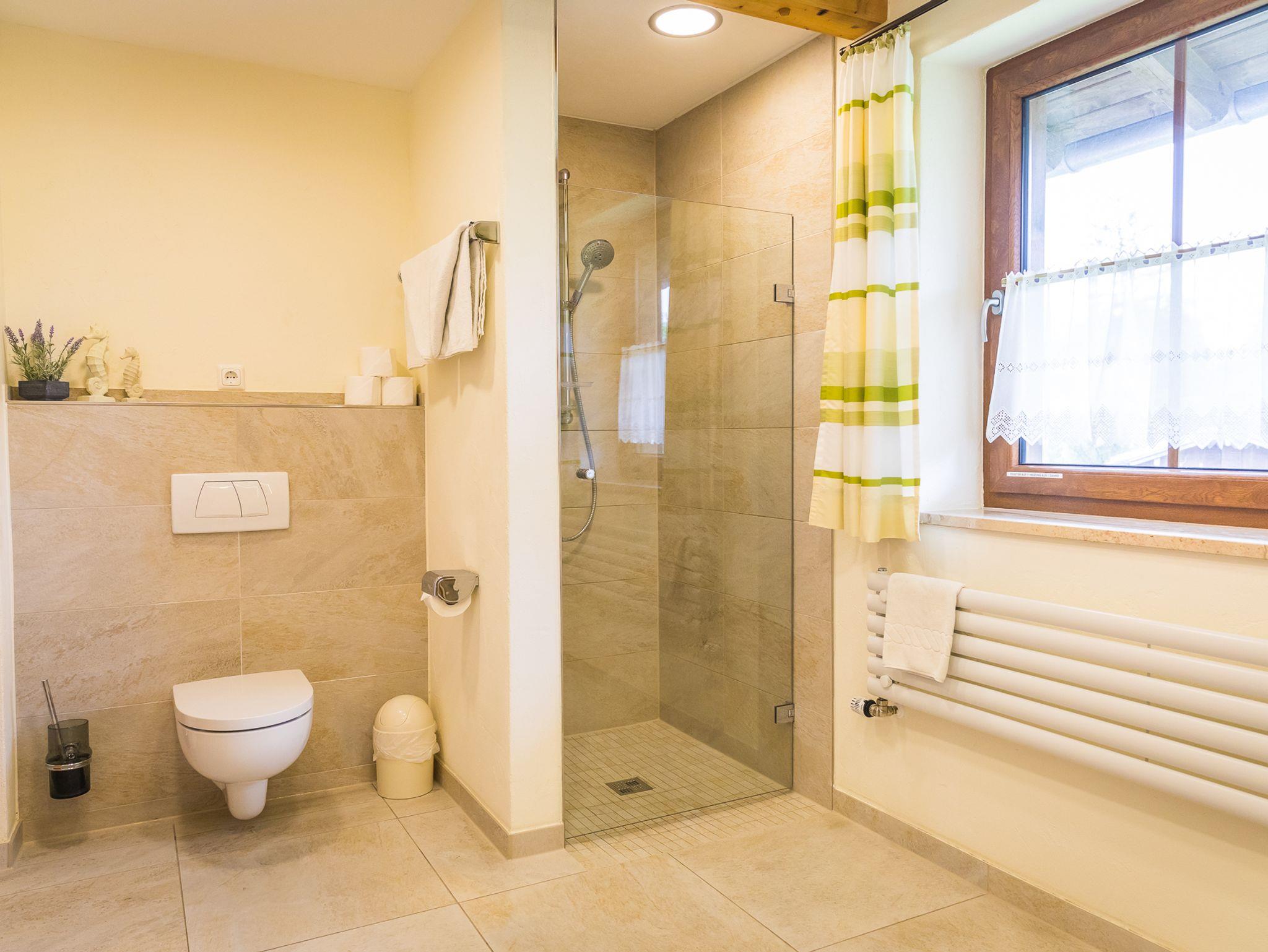 Das Ferienhaus besteht aus...... drei getrennten Schlafzimmern ... zwei modernen Bädern (Dusche, Badewanne, WC, Bidet, Fön)... einem 30 m² großen, gemütlichen Wohnzimmer mit Kachelofen, inklusive Kaminholz, LCD-TV , Safe, Hifi-Anlage, DVD-Player und W-LAN... einer modernen, großen, komfortable und gut ausgestatteten Küche (Spülmaschine, Backofen, Mikrowelle etc.) und... einem separaten Esszimmer... unseren großen umlaufenden Süd-Südost Balkon/Terrasse, der zum Grillen oder einem Sonnenbad einlädtInkl. Handtücher, Bettwäsche, Endreinigung, Kaminholz, Garagen, Safe, W-LAN, Telefon, Chiemgau-Karte.