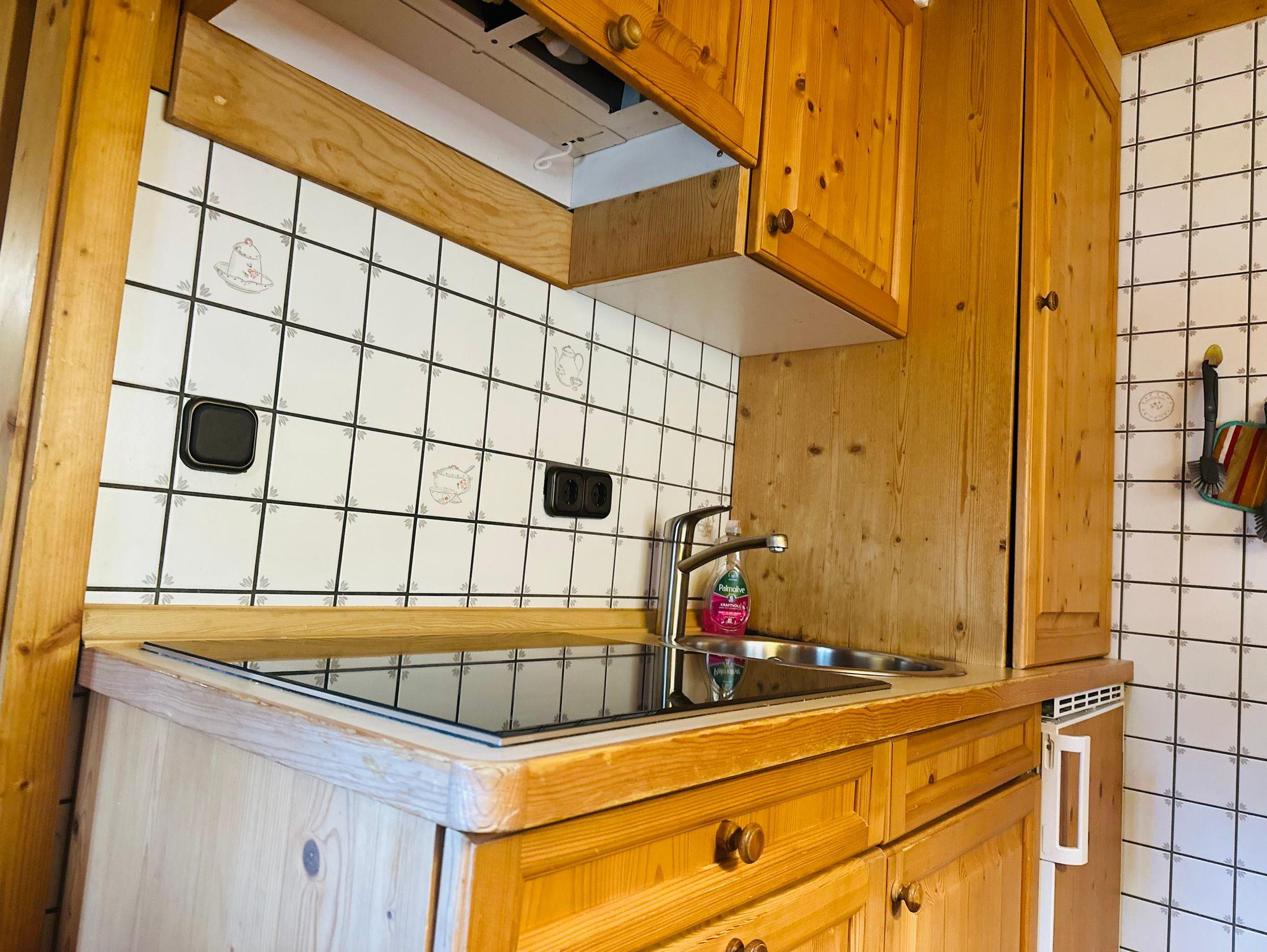 Auf 30?m² bietet sie eine voll ausgestattete Wohnküche mit 4-Platten-Induktionsherd, Mikrowelle, Toaster, Wasserkocher, Eierkocher, Kühlschrank sowie Ess- und Kochgeschirr.