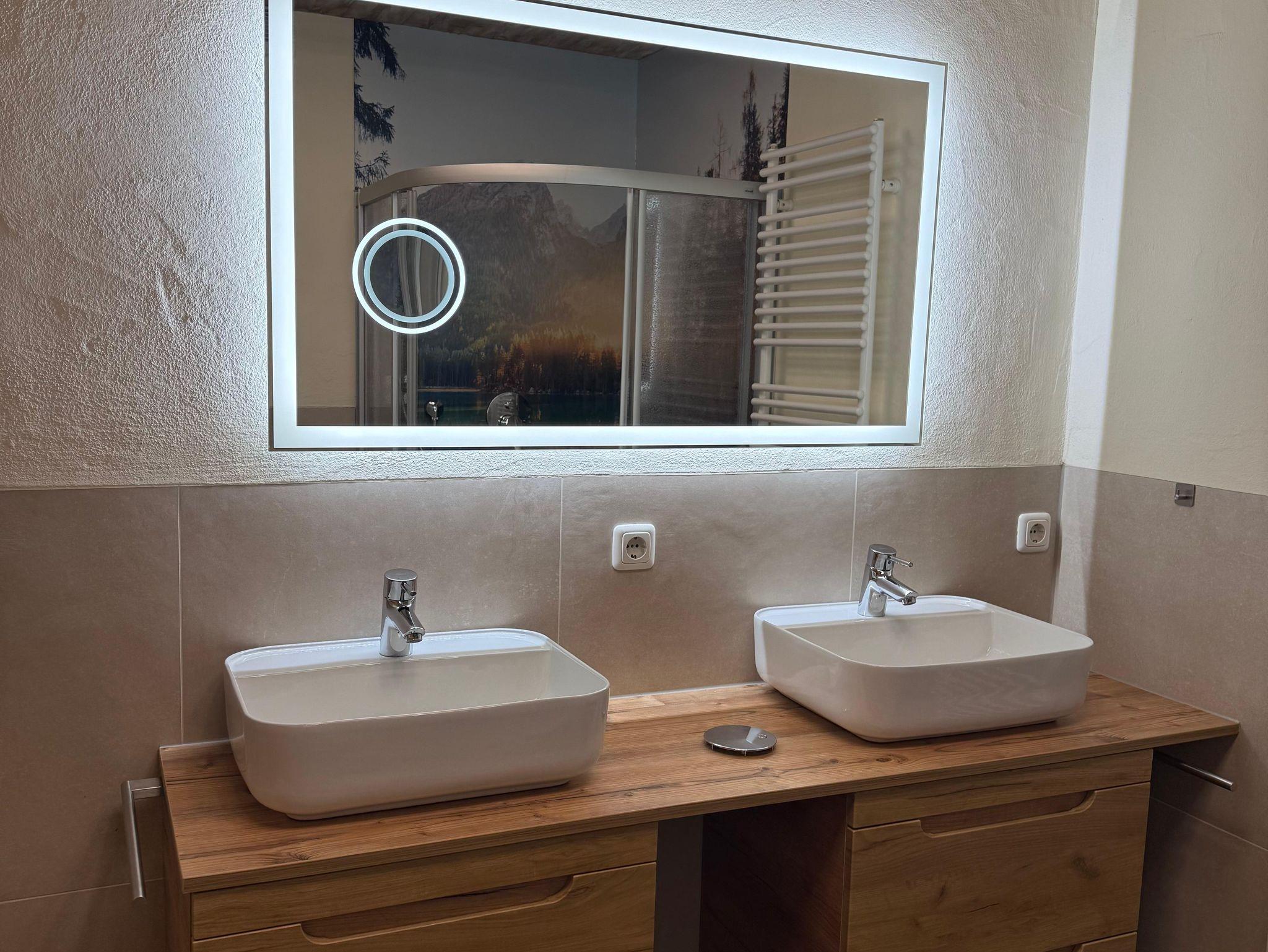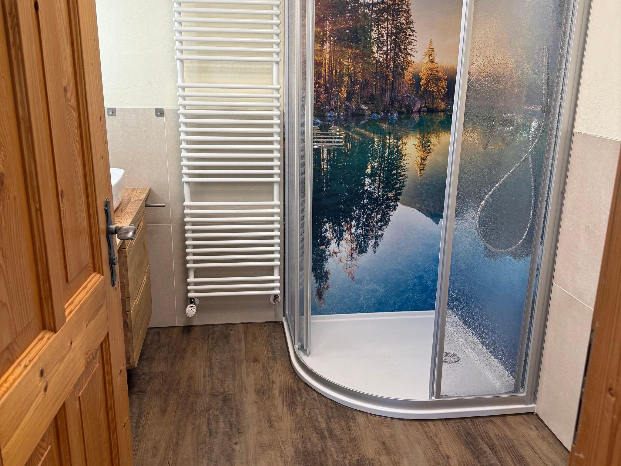• 1 Badezimmer mit Dusche und WC, Handtücher, Badetücher und Fön