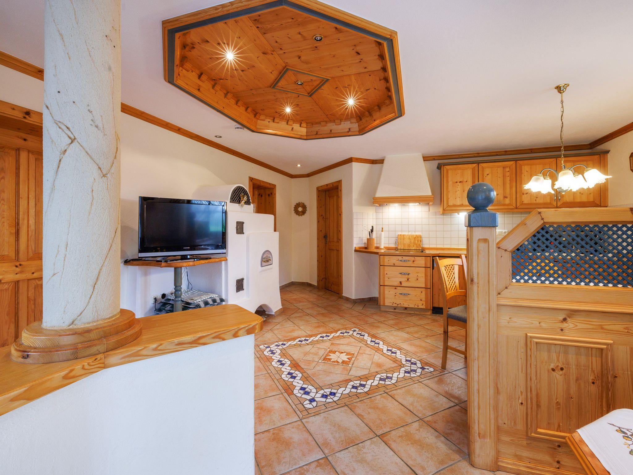 Unsere Ferienwohnung Vroni ist die ideale Urlaubsunterkunft für 2-4 Personen. Auf insgesamt 65 m² bietet die Ferienwohnung 2 getrennte Schlafzimmer und einen Wohn-Essraum mit Kachelofen. Im Wohnbereich finden Sie eine Essecke und eine gemütliche, große Sitzecke mit Fernseher. Vom Wohn-Essbereich aus gelangen Sie auch auf die eigene Terrasse mit Sitzgelegenheit und Sonnenschirm. Die komplett ausgestattete Küche macht Lust auf kulinarische Kreationen. Die Ferienwohnung verfügt über ein Badezimmer mit Dusche und WC.