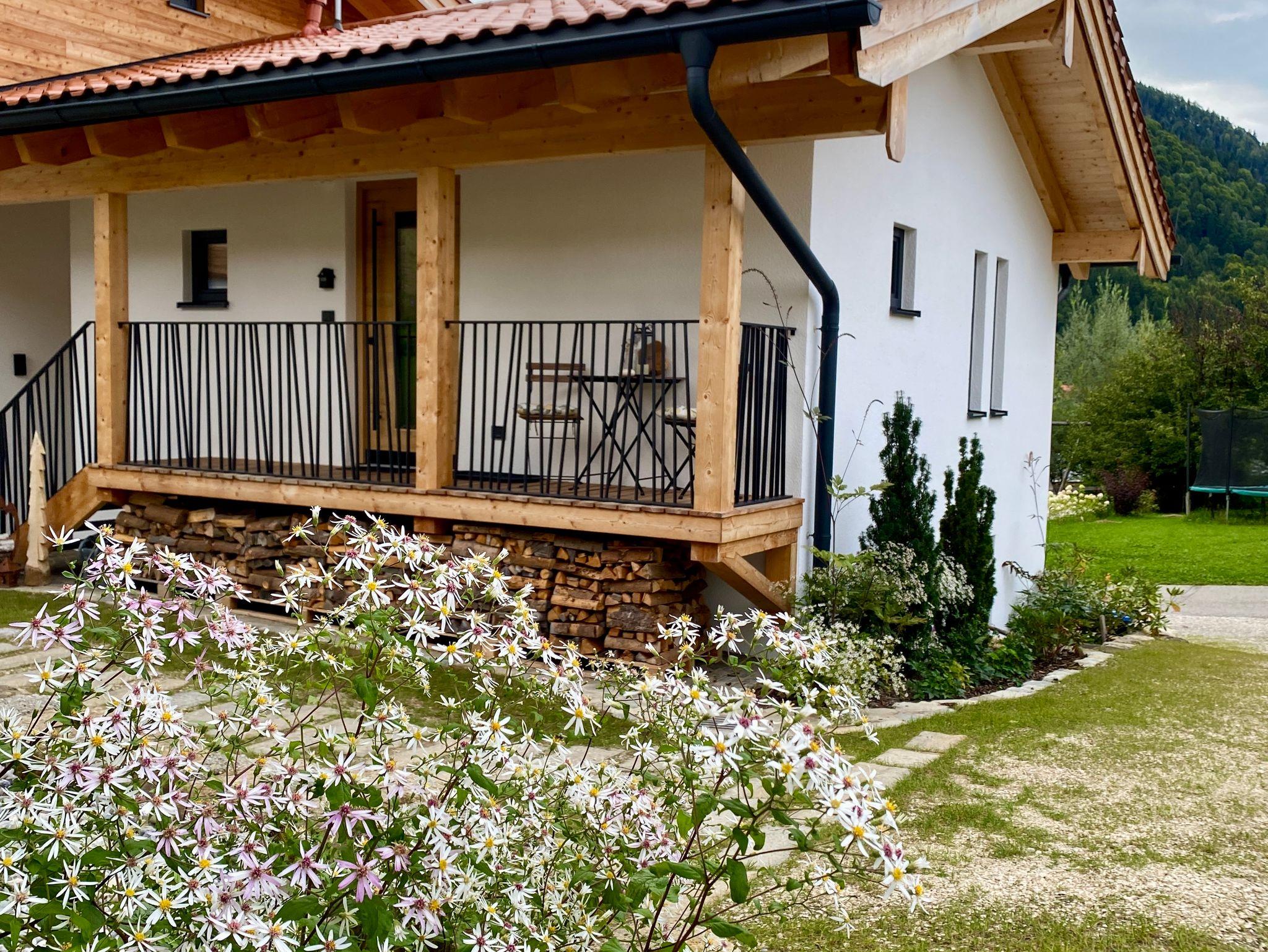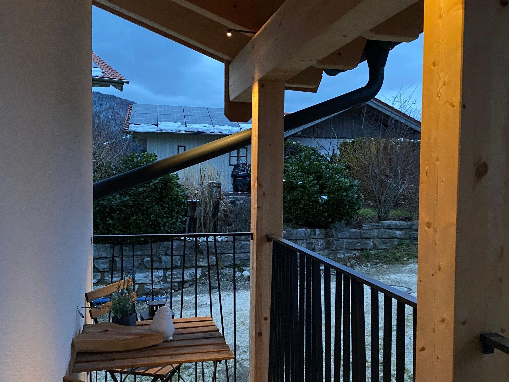 Dieser Sitzplatz lädt zum Verweilen ein – ideal für ein genüssliches Frühstück an der frischen Luft, während der Blick auf den Rauschberg die Seele berührt. Perfekt für einen entspannten Start in den Tag.