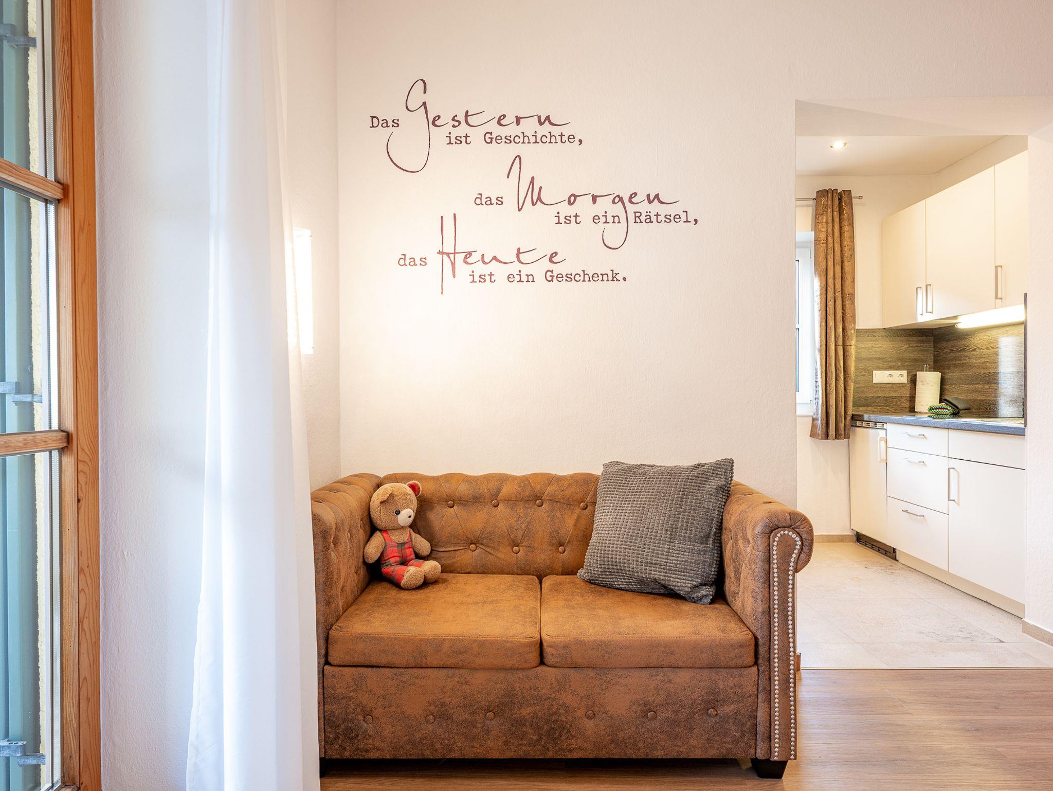 Auf 40 m² erwartet Sie eine wohnliche Atmosphäre in warmen Beige- und Naturtönen, kombiniert mit Fliesen- und Laminatböden, die für ein angenehmes Raumgefühl sorgen. Die warme Farbgestaltung für eine besonders ruhige und behagliche Stimmung – perfekt zum Entspannen nach einem aktiven Tag in den Bergen.