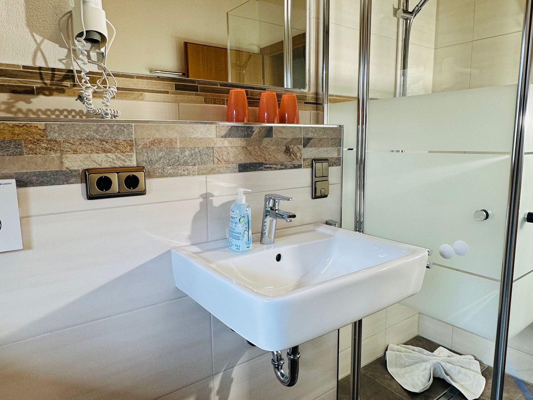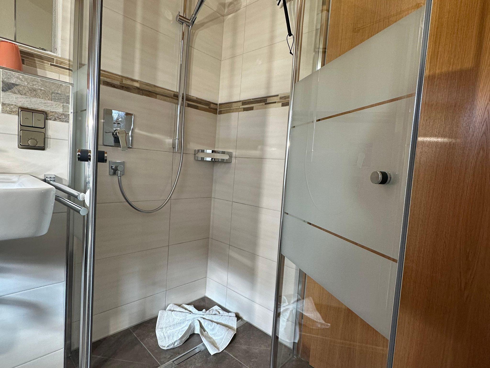 • WC und Waschbecken, Dusche mit Regenduschfunktion