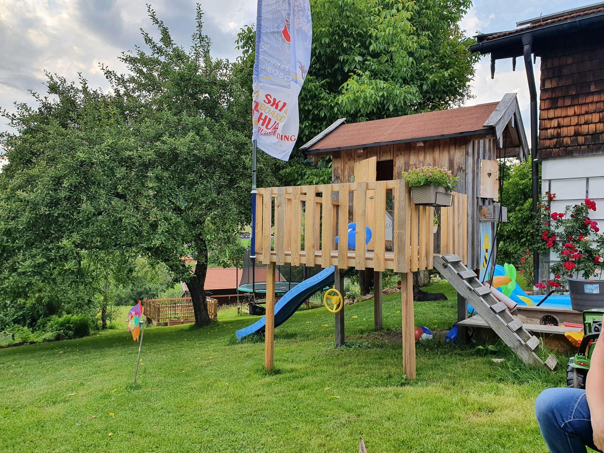 Wir bieten Ihnen ein gemütliches Doppelzimmer im modern-rustikalen Stil. Das Zimmer verfügt über ein Doppelbett, Dusche/WC, Flat-TV und WLan.Über eine Balkontür erhalten Sie direkten Zugang zu einem unserer zwei großen Holzbalkone. Dieser ist mit einer Sitzgarnitur ausgestattet, so dass Sie den wundervollen Blick auf die umliegenden Berge und die reichhaltige Natur entspannt genießen können. Von dort aus können Sie auch einen Blick auf unsere Hühner und Schafe werfen.Ein Babybett können wir Ihnen auf Anfrage gerne zur Verfügung stellen.Um Ihnen einen optimalen Start in den Tag zu ermöglichen servieren wir Ihnen morgens ein reichhaltiges Frühstück in unserem Frühstücksraum. Hierbei legen wir besonderen Wert auf regionale Produkte aus der unmittelbaren Umgebung. Der Frühstücksraum/Aufenthaltsraum mit integrierter Teeküche steht Ihnen den ganzen Tag zur Verfügung. Sie können die zwei Kochplatten sowie den Kühlschrank zur Selbstverpflegung nutzen.