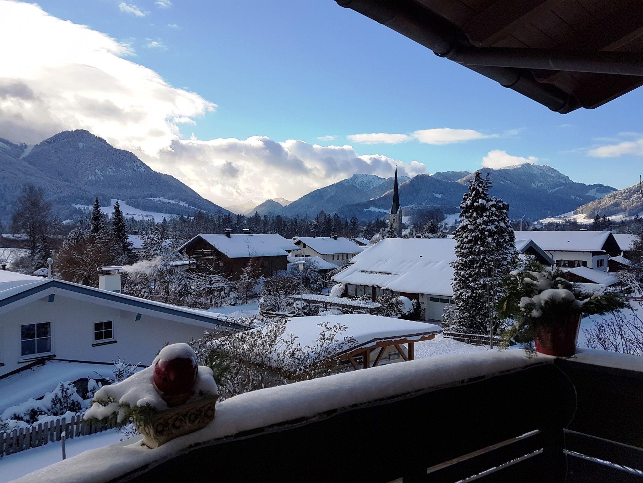 Unser Ferienappartement Almblick bietet auf ca. 38 qm einen großzügigen Wohn-Schlafraum, der neben der Schlafecke mit Doppelbett auch über einen kleinen Essplatz und eine Sitzecke verfügt, die als zusätzliche Schlafcouch genutzt werden s Weiteren gibt es eine kleine, aber voll ausgestattete Küche (Kochnische) und ein eigenes Bad (Dusche/WC).Das schöne und beliebte Appartement ist nach Süden ausgerichtet und hat durch die großen Panoramafenster einen phantastischen Aus- und Weitblick.Das Ferienappartement Almblick liegt ebenerdig im Erdgeschoß und hat zugleich aufgrund der erhöhten Hanglage des Hauses einen freien Ausblick vom sehr großzügigen und witterungsgeschützten Balkon auf das umliegende Bergpanorama mit Rauschberg, Saurüssel, Unternberg, Hochfelln und Westernberg.