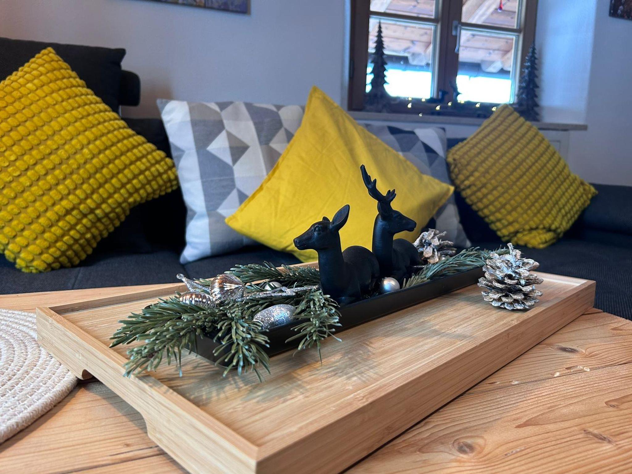 Unsere Ferienwohnung liegt im Erdgeschoss mit eigenem Zugang mit einem teilüberdachten Freisitz mit Terrasse. Im Garten finden Sie Liegeplätze und eine Grillmöglichkeit. Fahrräder und Wintersportgeräte können sicher verwahrt werden. Ihr Parkplatz ist direkt an der Wohnung. Handtücher werden nach Ihrem Bedarf gewechselt. Die Wohnung verfügt über ein Schlafzimmer mit einem großen Doppelbett. Ein Kinderbett ist vorhanden und kann im Schlafzimmer dazugestellt werden. Im Wohnzimmer finden Sie eine bequeme ausziehbare Doppelcouch.Mit einem leistungsstarken WLAN können Sie Ihre Urlaubserlebnisse nun bequem teilen.