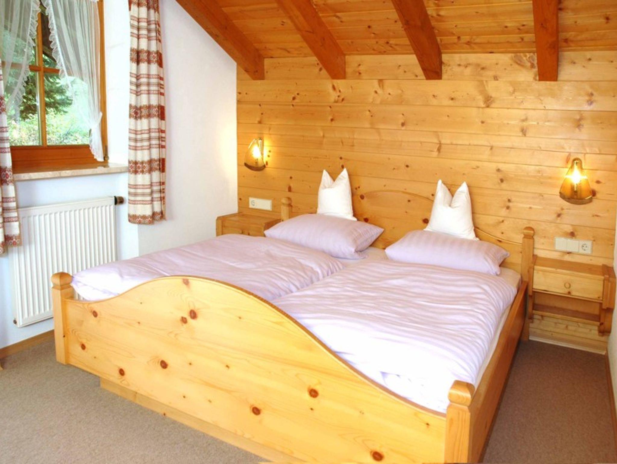 Geräumige Ferienwohnung mit Sichtschalung, bedarfsgerecht rustikal eingerichtet. Südbalkon mit bequemen Gartenmöbeln.