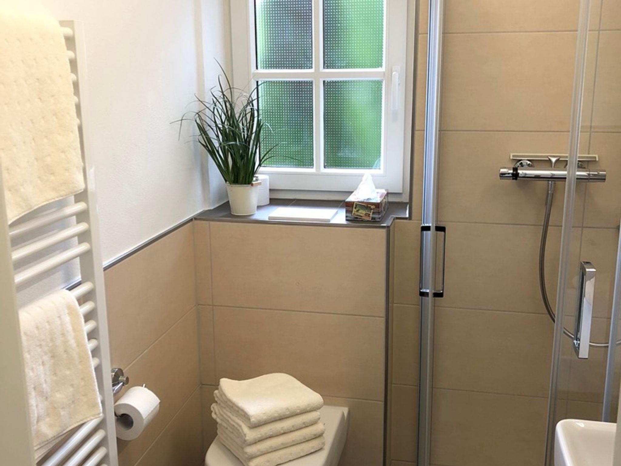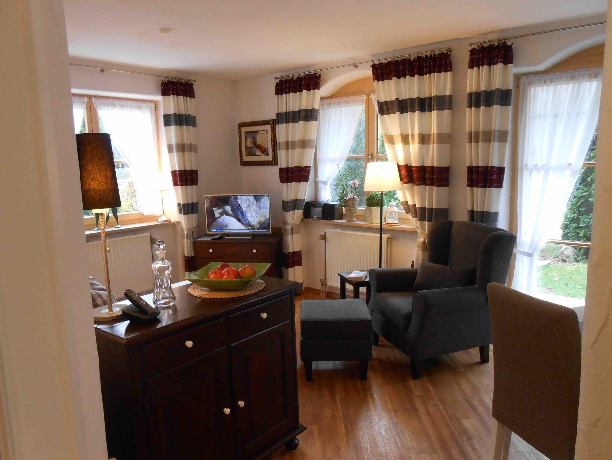 Gemütliche Ferienwohnung im Erdgeschoss der Niederfeldstraße 6 a mit Süd- und Ostterrasse. Neben Internet, Fernseher und kleiner Musikanlage stehen Ihnen zur Unterhaltung auch mehrere Bücher, Karten- und Brettspiele zur Verfügung. Das Schlafzimmer ist funktionell eingerichtet und der Kleiderschrank bietet ausreichend Stauraum sowie zahlreiche Kleiderbügel. Das kleine Duschbad wurde 2019 renoviert und entspricht dem heutigen Standard. Die Küche ist mit ausreichend Geschirr und Kochutensilien ausgestattet und bietet Hobbyköchen alle Möglichkeiten. Spülmaschine, Cerankochfeld, Multifunktionsofen und Kühlschrank mit Gefrierfach runden die Ausstattung ab. Natürlich sind auch Kaffeemaschine, Toaster, Wasser- und Eierkocher vorhanden.