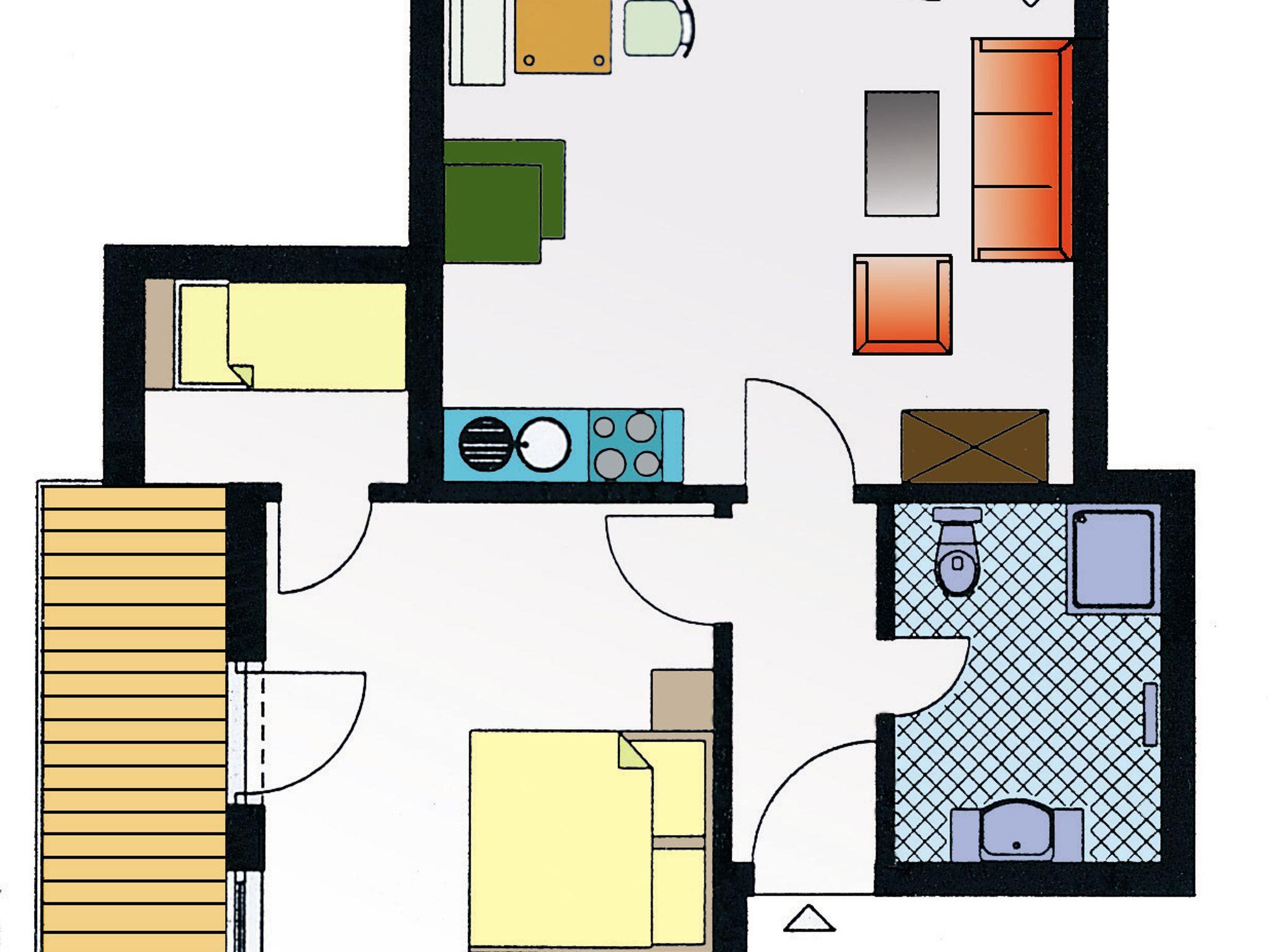 Ferienwohnungen Schausbreitner inkl. Chiemgaukarte, 9 Ferienwohnung TypC 60 qm, Balkon, Kochnische, 1 Schlafzimmer, Wohnzimmer, WLAN