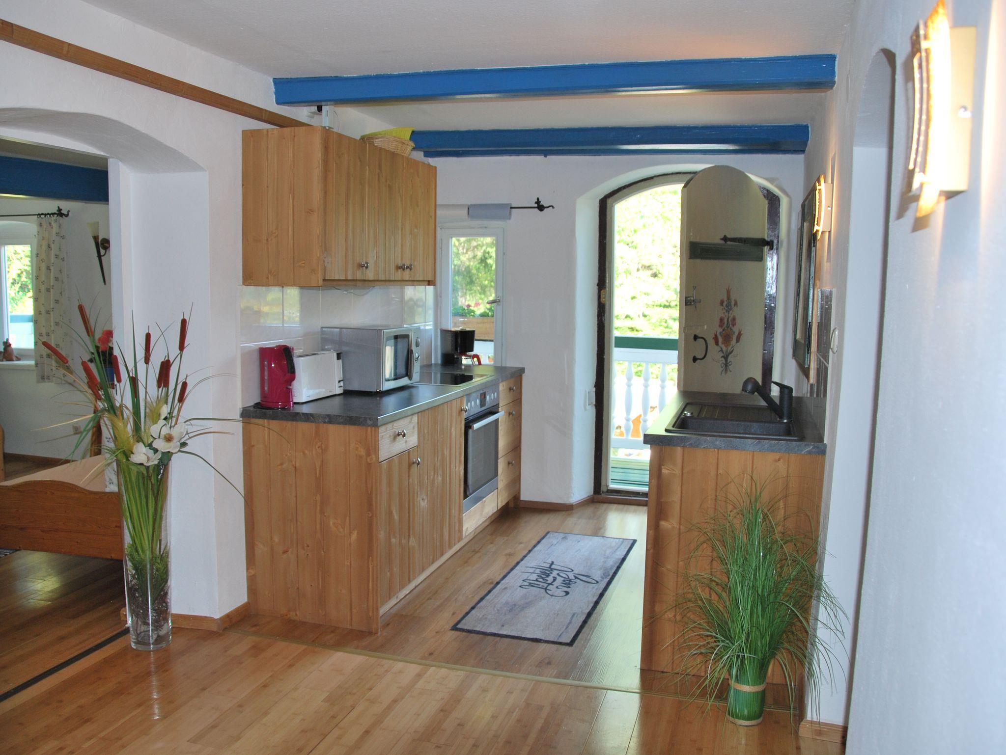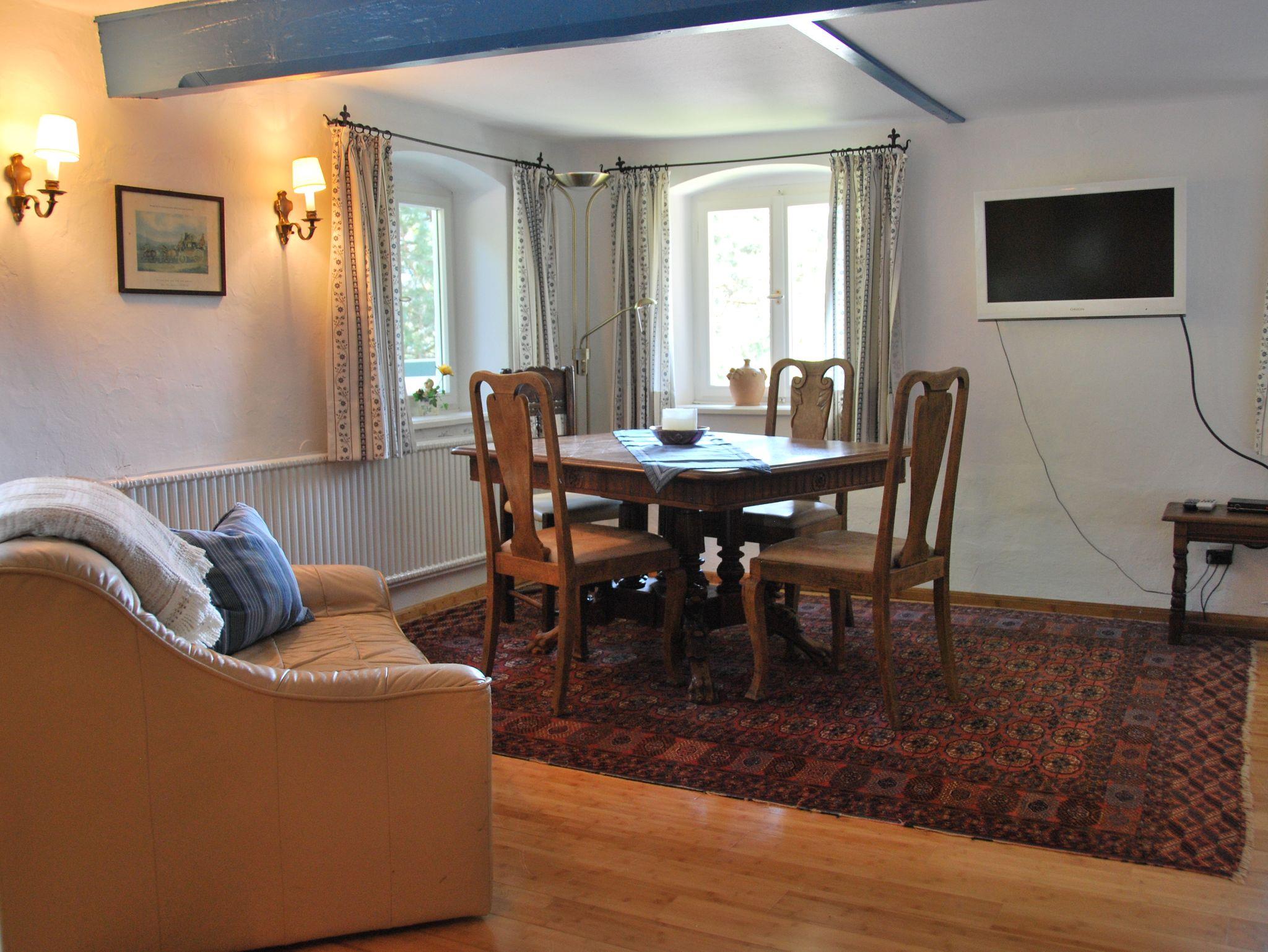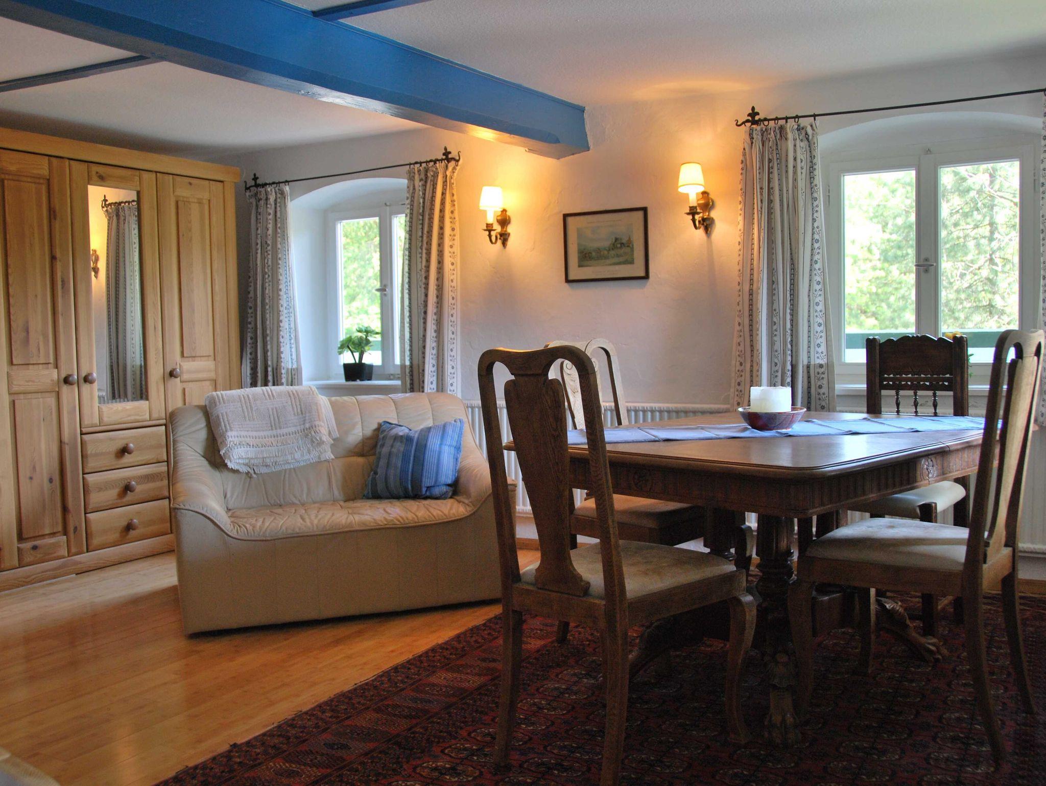 Die großzügige 2-Zimmer-Wohnung befindet sich im 1. Obergeschoß des Hofes. Vom Balkon hat man einen herrlichen Blick über das Ruhpoldinger Tal.