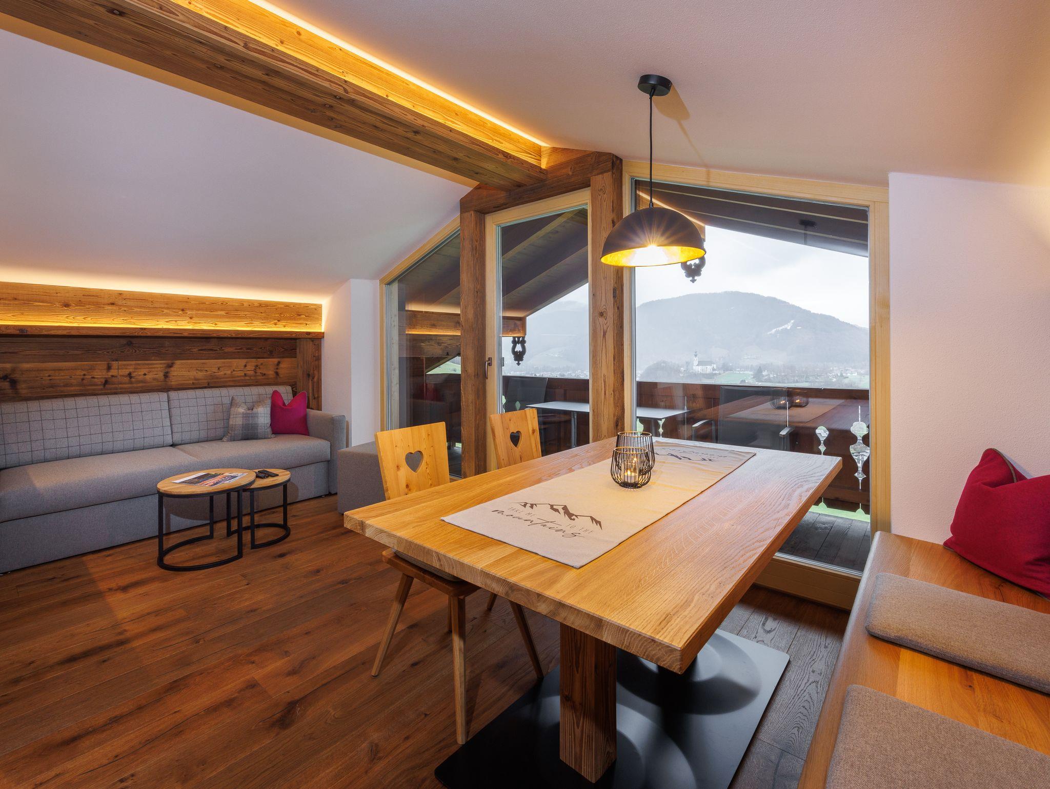 Unsere, neue Ferienwohnung „Familiennest“ mit traumhaften Panoramablick ist mit viel Handarbeit und Liebe zum Detail im alpinen Flair eingerichtet. (Eröffnung Winter 23/24) Durch das regionale Holz und dem Kamin strahlt sie Wärme und Behaglichkeit aus.