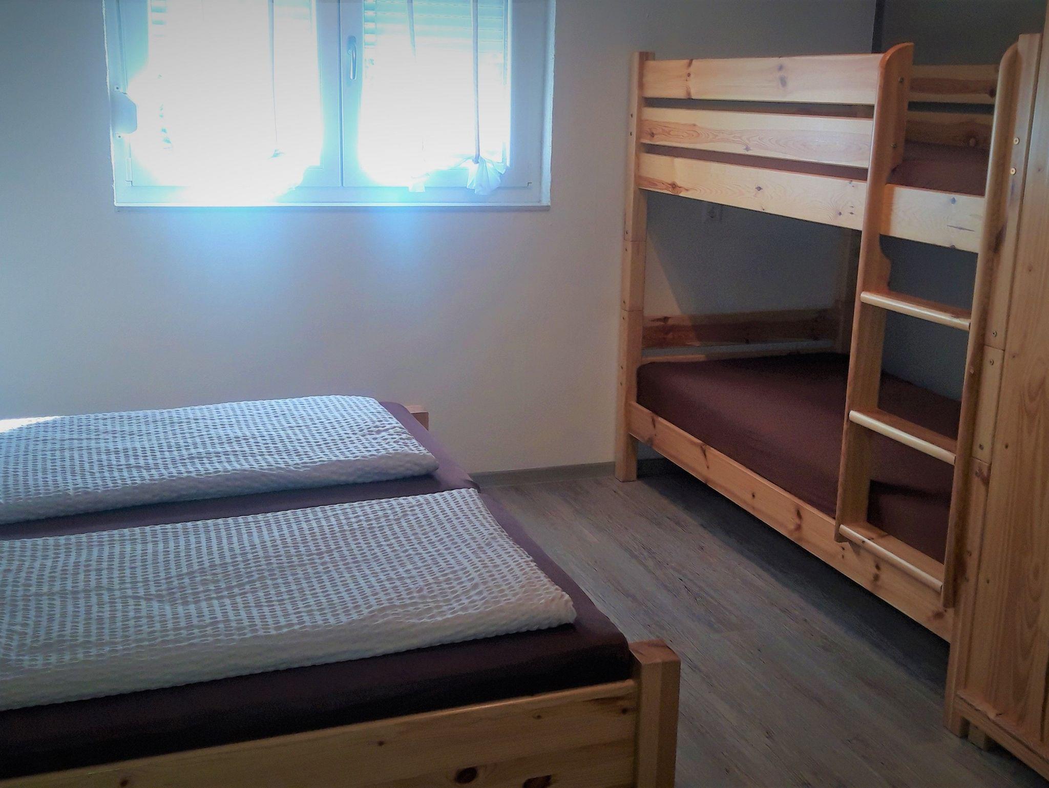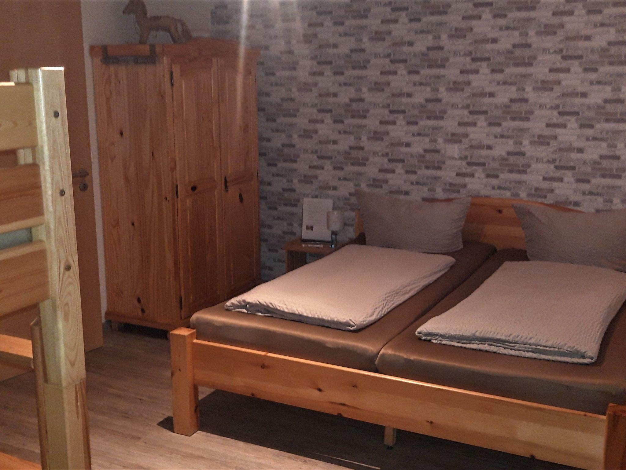 Herzlich Willkommen! Unser 2012 erbautes Haus verfügt über zwei helle, ruhige und modern eingerichtete Nichtraucher-Vierbettzimmer. Durch jeweils ein Doppelbett und ein Etagenbett sind die Zimmer für Familien geeignet. Jedes Zimmer ist mit Dusche, WC und TV ausgestattet.