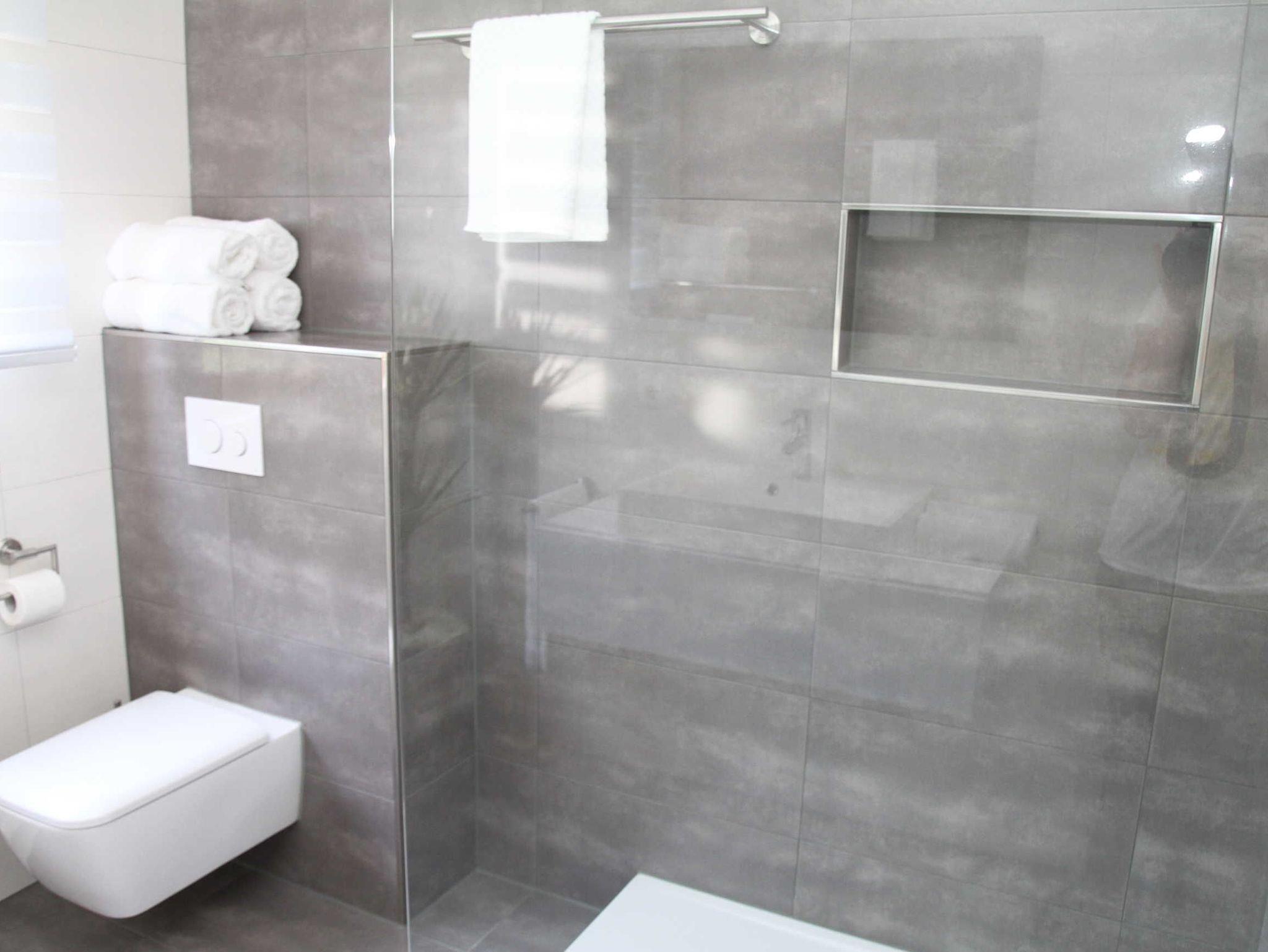 Das Badezimmer ist ausgestattet mit Dusche und WC mit Föhn.