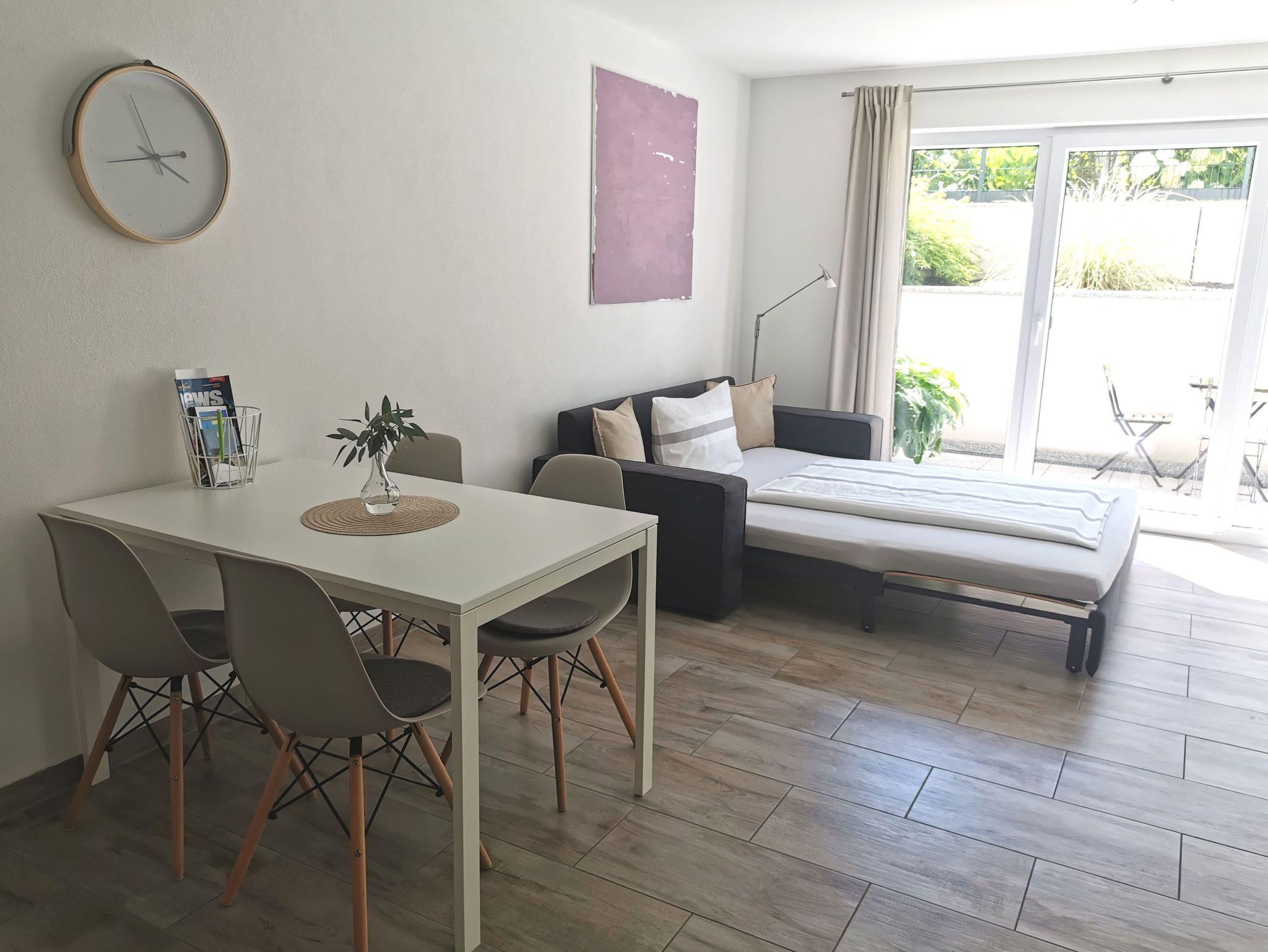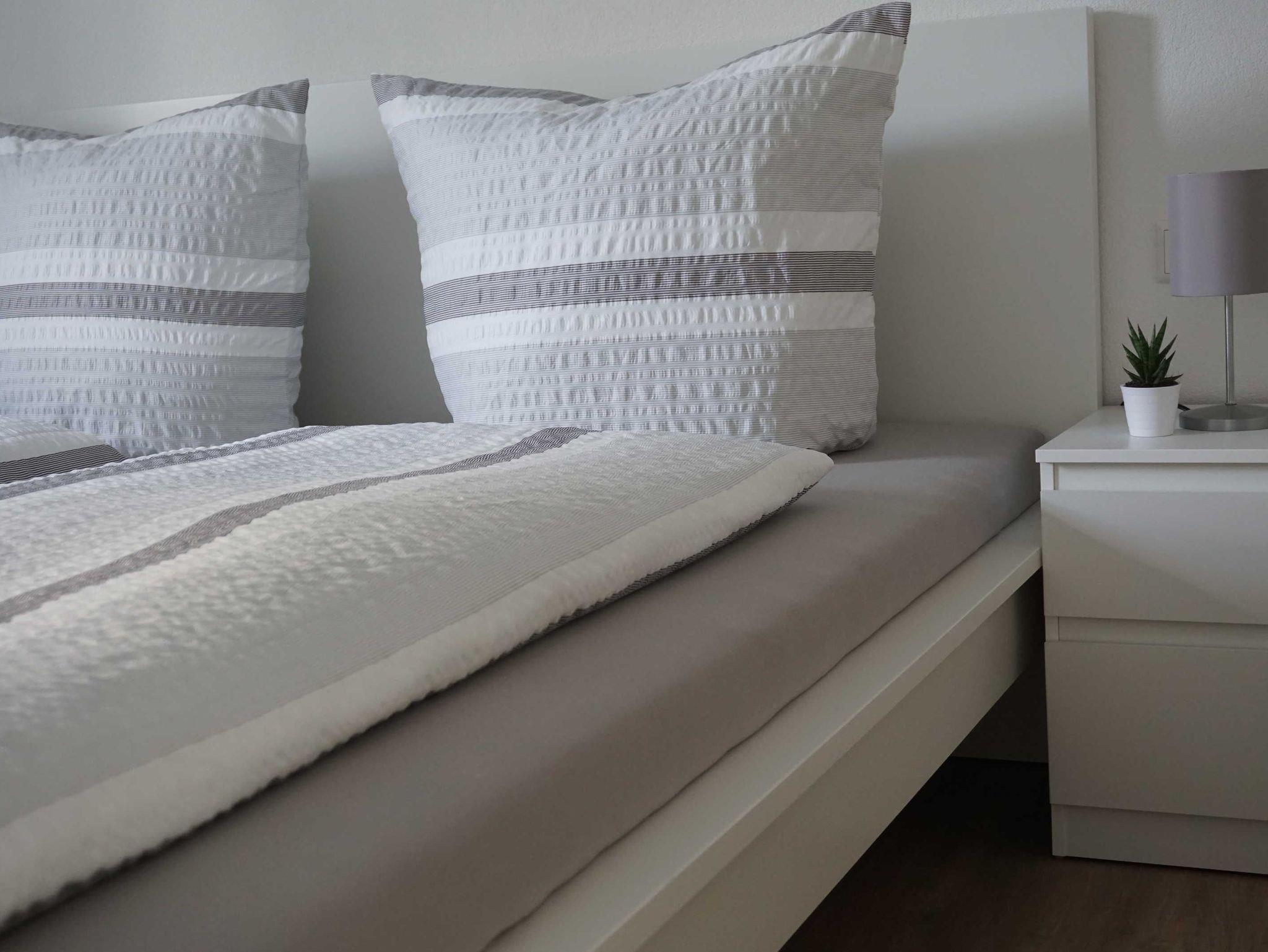 Die neu eingerichtete 50 qm große Wohnung verfügt über ein getrenntes Schlafzimmer, ein Wohn-/Esszimmer mit Schlafmöglichkeit sowie eine moderne Küche. Das Bad ist mit Dusche und WC ausgestattet. Handtücher und Bettwäsche sind vorhanden. Kinder bis einschließlich 3 Jahren schlafen im Bett der Eltern kostenlos.