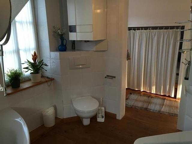 Im Obergeschoss finden Sie ein weiteres Doppelzimmer und zwei Kojen-Betten, die besonders bei Kindern beliebt sind. Zudem steht ein zweites Badezimmer zur Verfügung, das neben einer Dusche auch eine Badewanne bietet, die zum Entspannen einlädt.