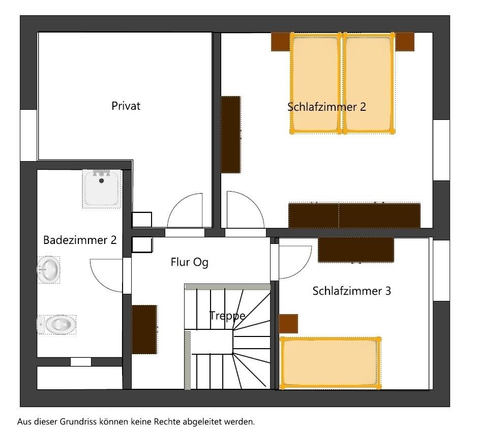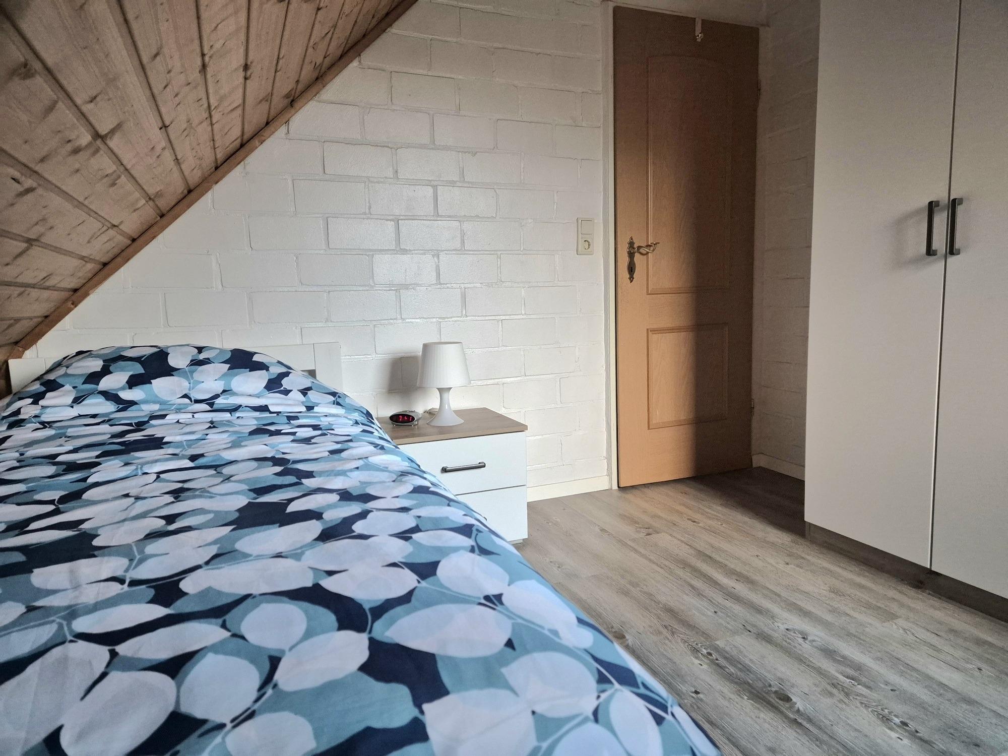 Im Obergeschoss finden Sie ein weiteres Badezimmer mit Dusche und WC, ein Doppelzimmer und ein Zweibettzimmer.