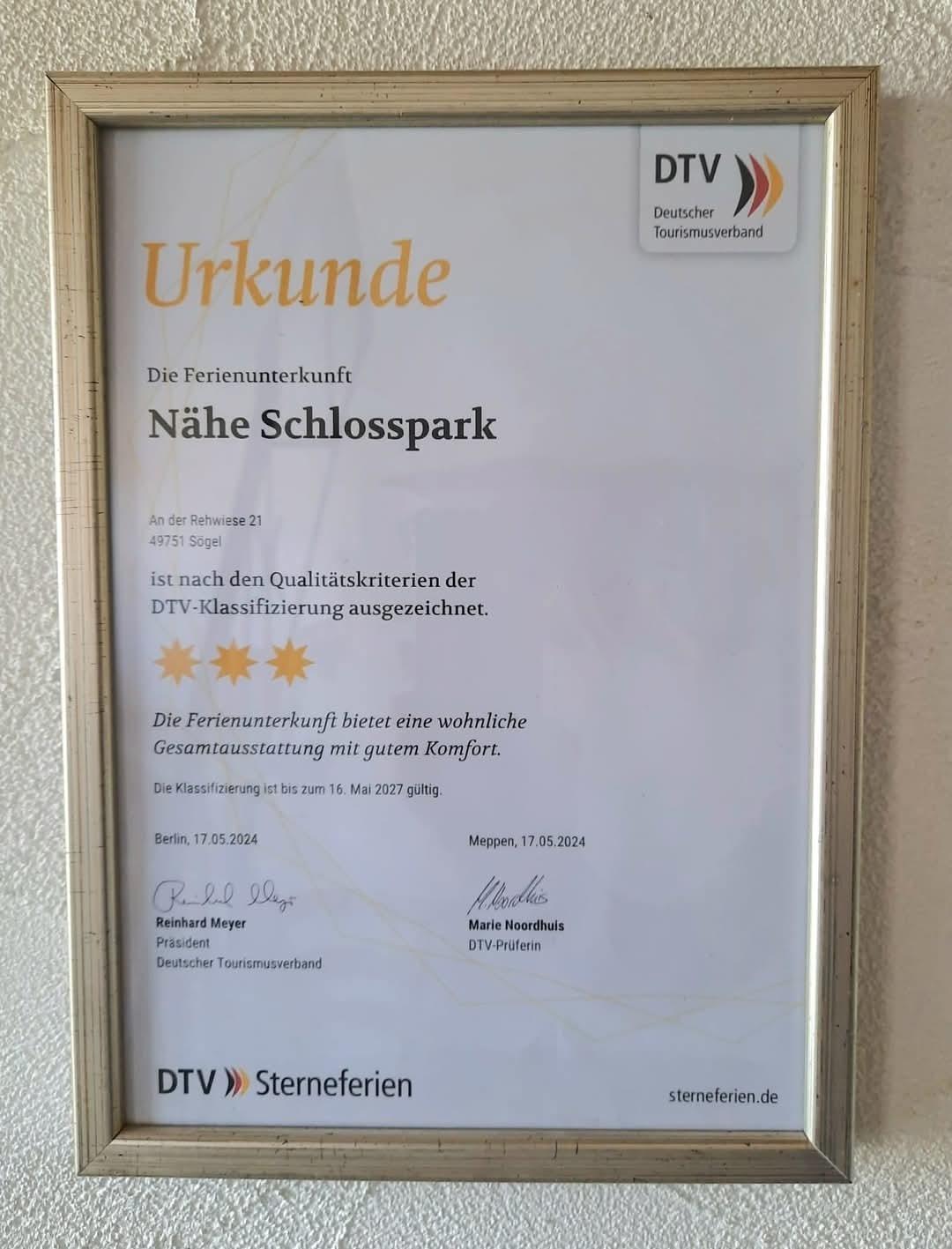 Das Nichtraucher-Ferienhaus "Nähe Schlosspark" ist nach DTV- Kriterien mit 3-Sternen klassifiziert worden.