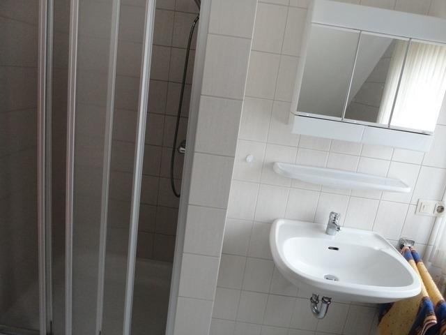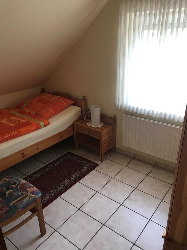 Im Obergeschoss befinden sich ein Doppelzimmer, ein Zweibettzimmer, ein weiteres Einzelzimmer und ein zweites Badezimmer mit Dusche und WC – ideal für Familien oder kleine Gruppen.