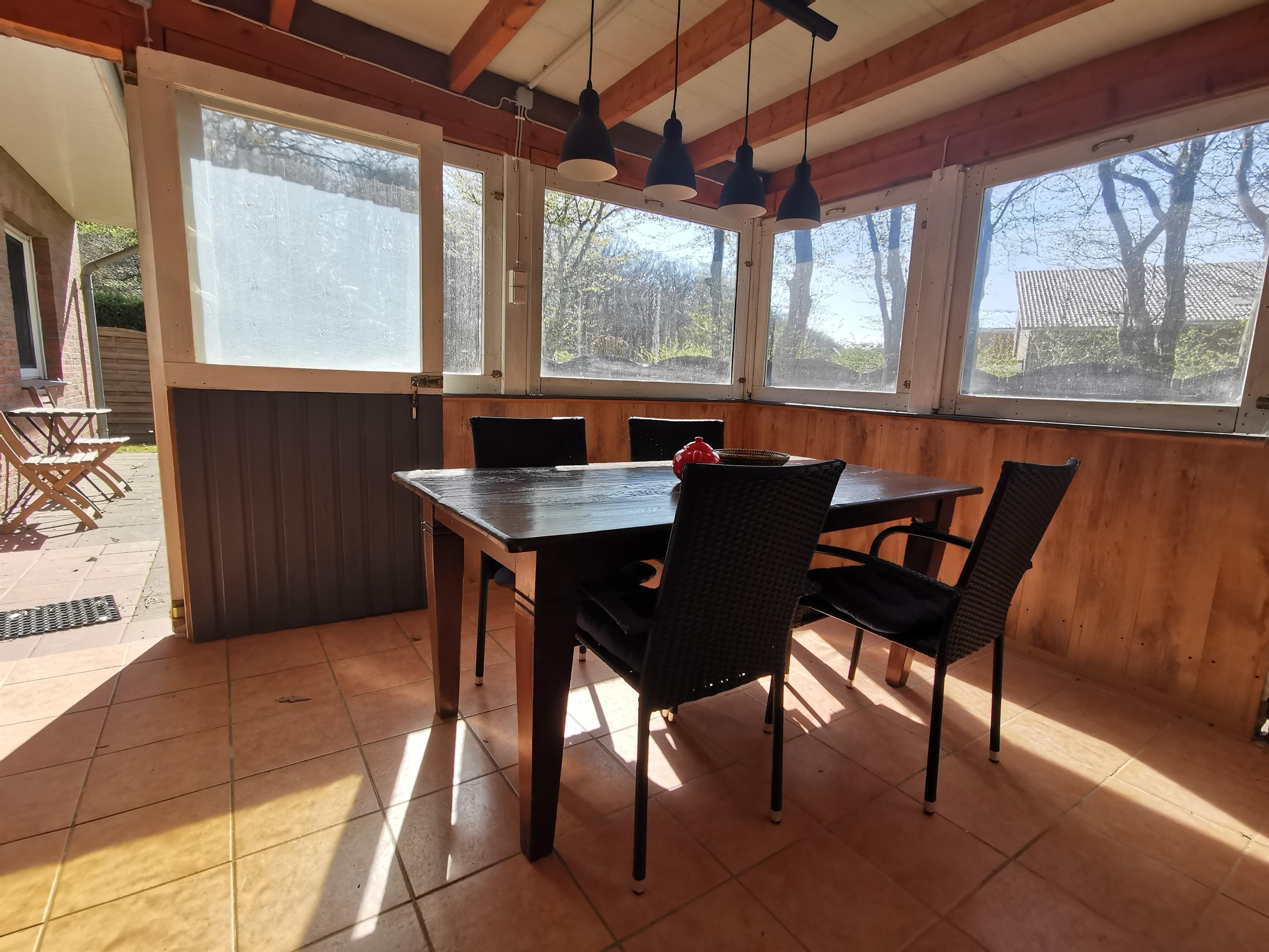 - großer Holztisch incl. 6 Stühle auf der geschlossenen Terrasse