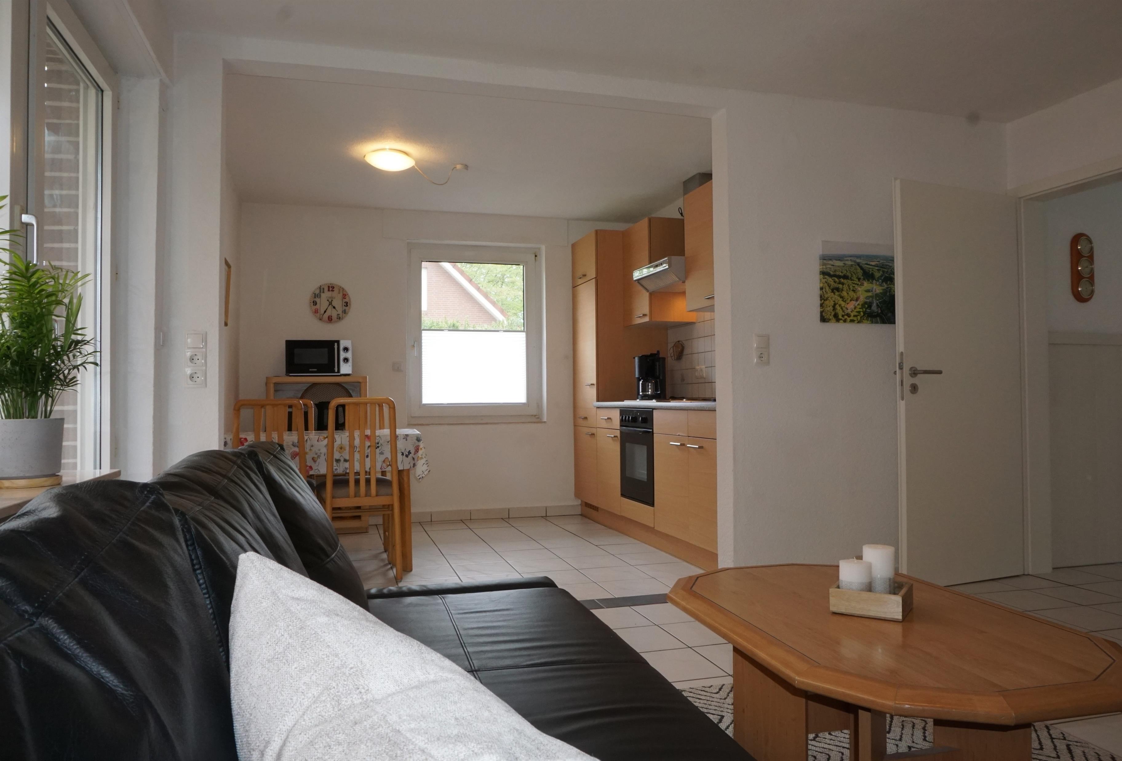 Im Erdgeschoss des Ferienhauses befindet sich ein Doppelzimmer, ein Badezimmer mit Dusche und WC, die gut ausgestattete Küche und das gemütliche Wohnzimmer mit TV und Radio.