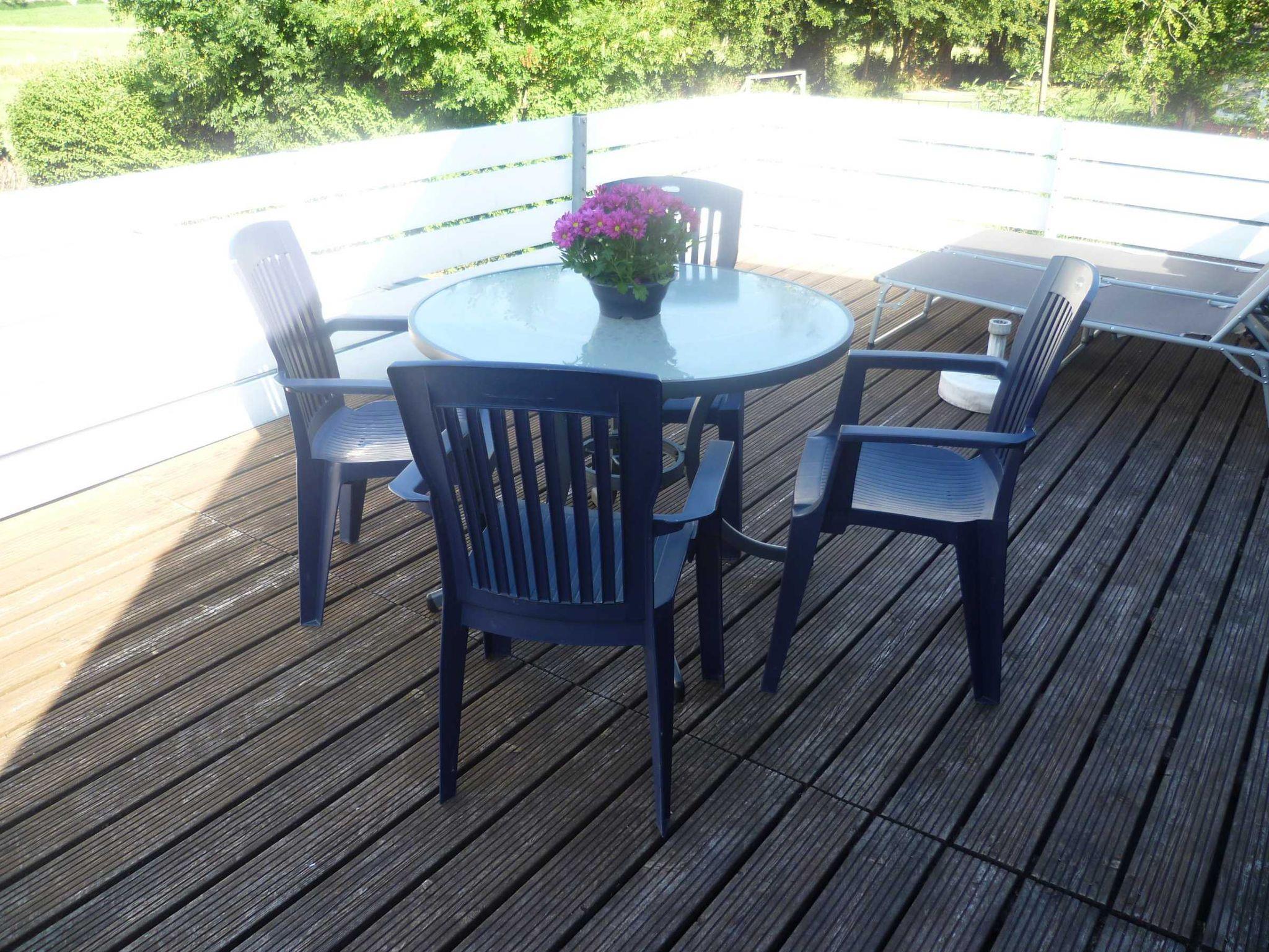 Die Ferienwohnung für 3-4 Personen ist ca. 60 qm groß und hat eine Dachterrasse mit Blick ins Grüne. Sie besteht aus einem Wohnschlafraum (Sitzecke und Doppelbett), einem Schlafzimmer mit französischem Doppelbett (1,40m breit), einer Küche und einem Duschbad.