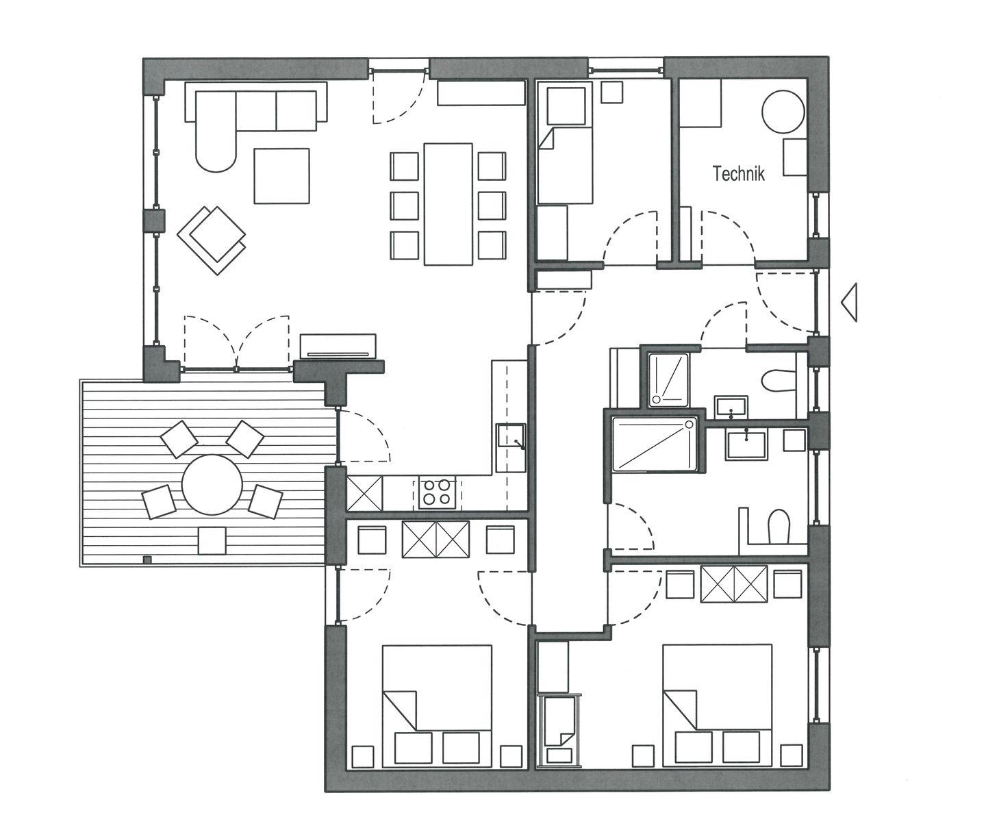 Ruhe und Entspannung kann man sowohl im großzügigen Wohnzimmer mit Seeblick als auch auf der nach Süd-West in Richtung Südensee ausgerichteten Terrasse finden.