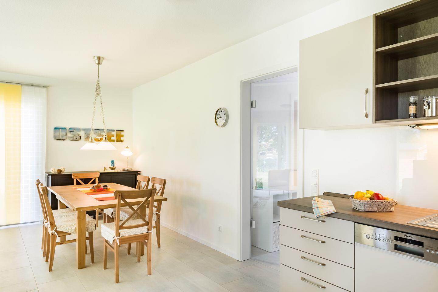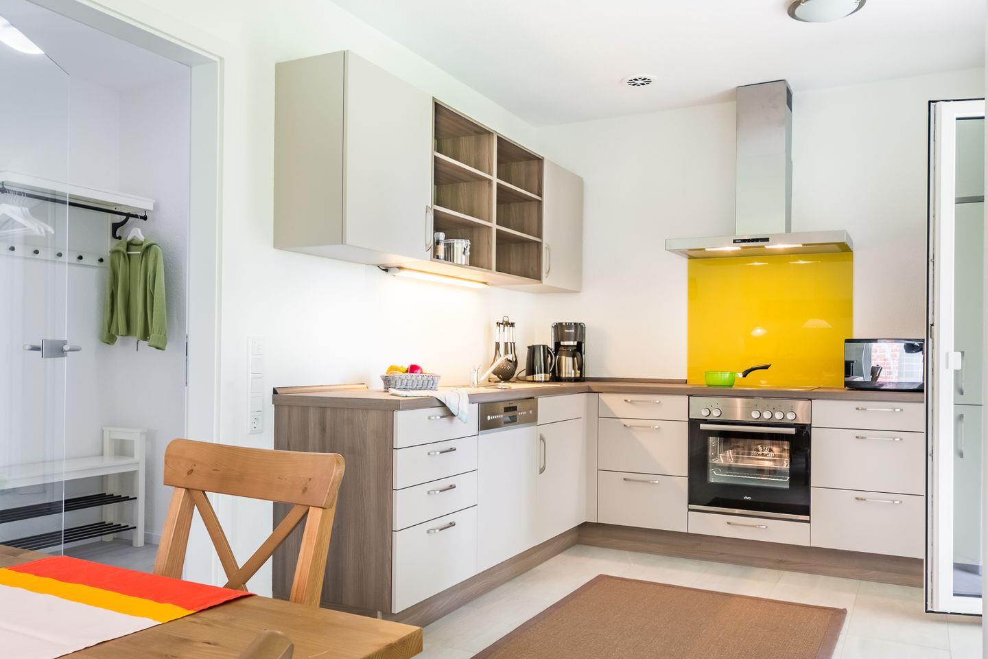 Die Küche ist modern und funktionell eingerichtet mit Kühl-Gefrierkombination, Glaskeramikherd, Backofen und Geschirrspüler. Mikrowelle, Wasserkocher, Kaffeemaschine und einiges mehr stehen selbstverständlich zur Verfügung.