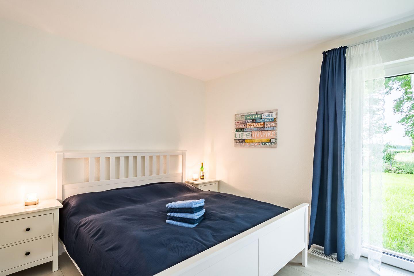 In zwei Schlafzimmern mit Doppelbetten und einem Schlafzimmer mit Einzelbett finden fünf Personen erholsamen Schlaf. Ein Kinderbett, Wickelkommode und Kinderstuhl sind vorhanden.