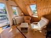 Im Untergeschoss geht die Wohnküche mit Leseecke direkt über ins Kaminzimmer gemütlicher Sitzgruppe und TV. Von hier treten Sie heraus auf eine Veranda, die in den Garten mit Bootssteg führt.