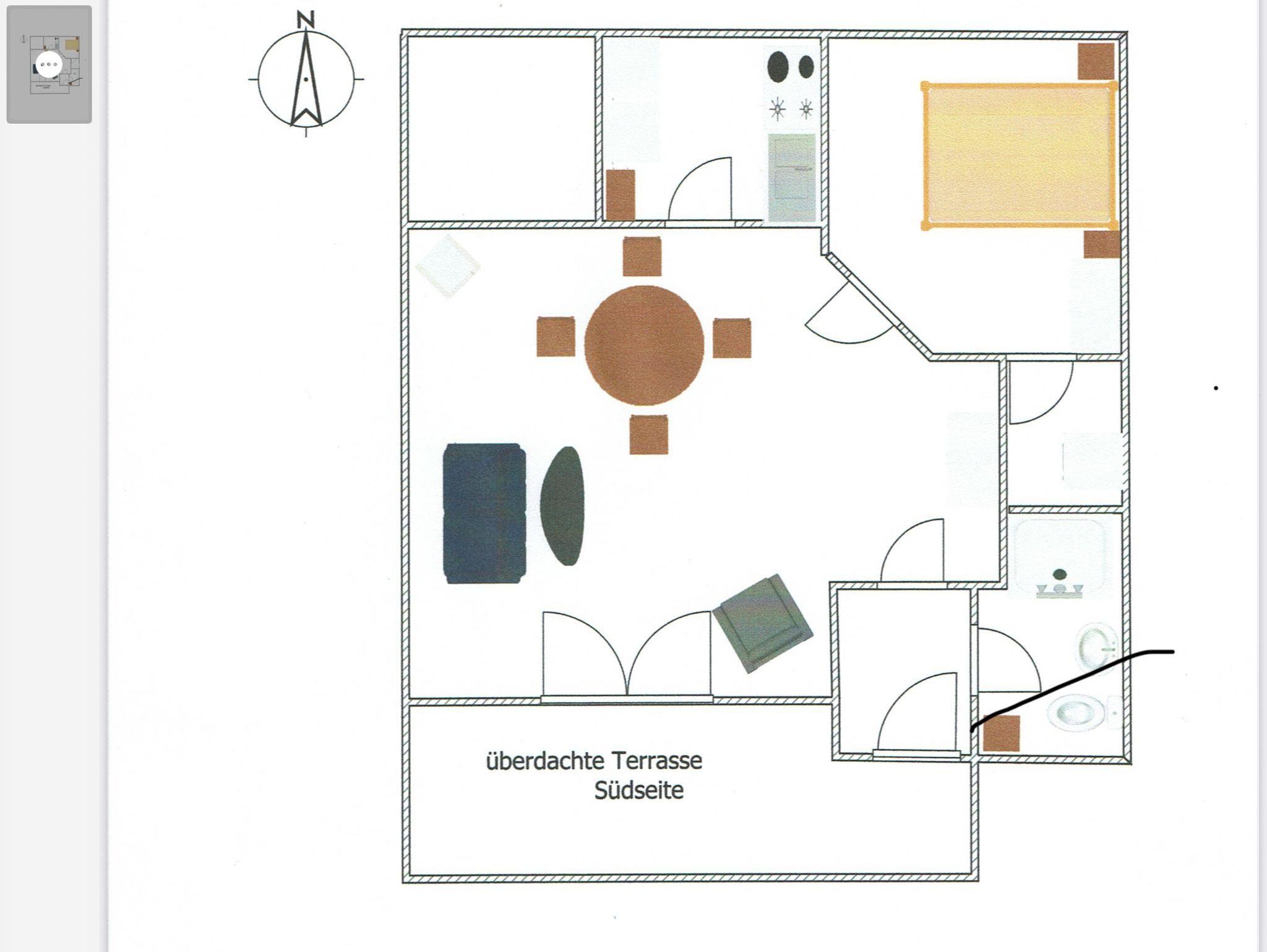 Sie wohnen in einer modernen, lichtdurchfluteten Erdgeschosswohnung mit einer großzügigen, überdachten Terrasse, die zum Entspannen einlädt. Die Wohnung ist mit SAT-TV und einer Elektroheizung ausgestattet.