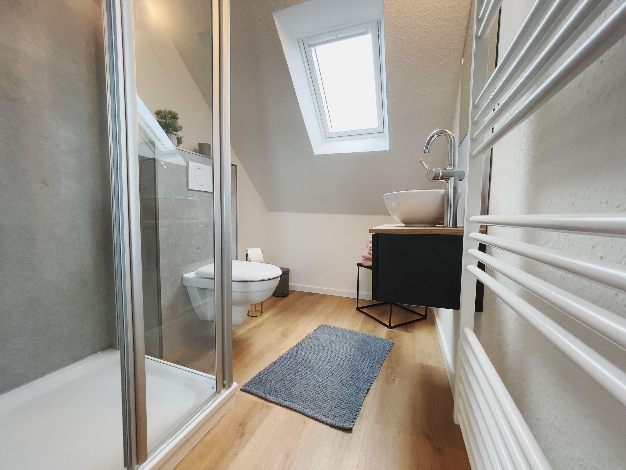 Das moderne Badezimmer bietet eine großzügige Dusche sowie ein WC und sorgt für Komfort auf höchstem Niveau. Im behaglichen Schlafzimmer finden Sie ein komfortables Doppelbett, einen Schreibtisch und einen zusätzlichen Fernseher ? ideal für Entspannung und Unterhaltung.
