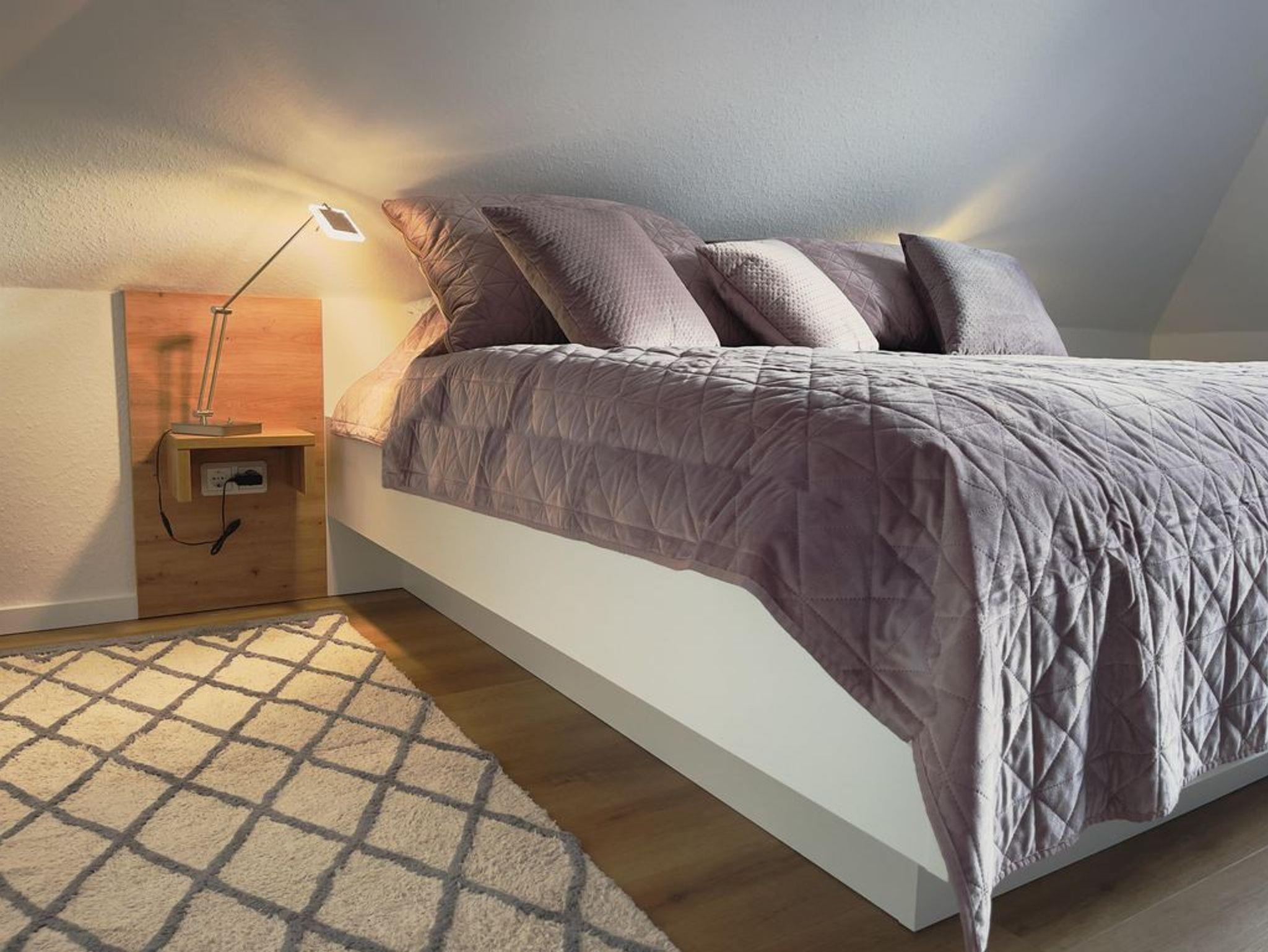 Der offene Wohnbereich lädt zum Verweilen ein und bietet genügend Platz, um sich zu entspannen. Der handgefertigte Esstisch eignet sich perfekt für gemeinsame Mahlzeiten, während die gut ausgestattete Küche Ihnen alle Möglichkeiten bietet, Ihre Lieblingsgerichte zuzubereiten. Das Schlafzimmer dient als ruhiger Rückzugsort, wo das eigens angefertigte Bett für erholsame Nächte sorgt. Modernen Komfort finden Sie im stilvoll gestalteten Badezimmer.