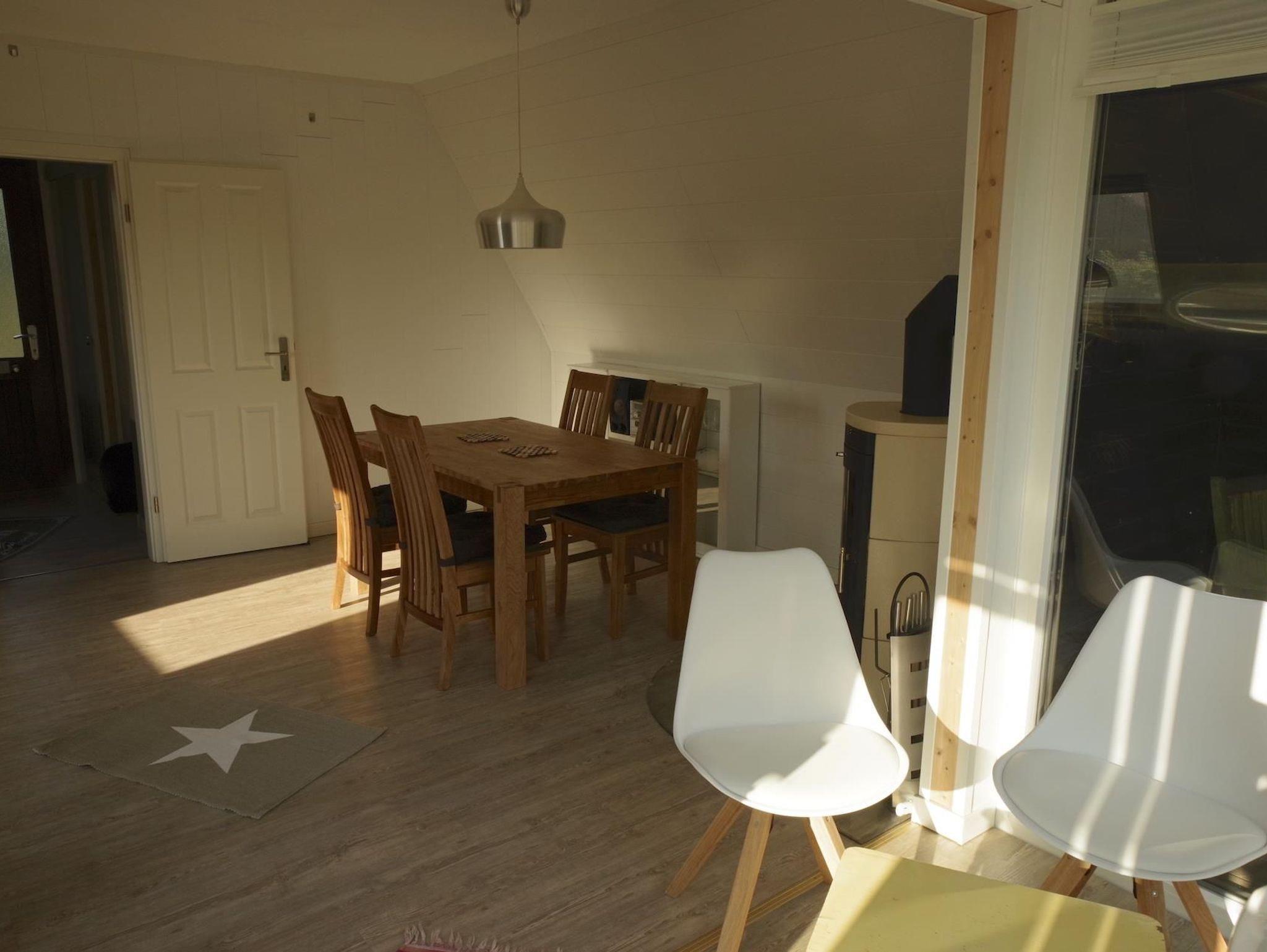 Das Ferienhaus bietet auf ca. 65 m² Wohnfläche ein gemütliches Ambiente mit einem geräumigen, kombinierten Wohn- und Esszimmer, zwei Schlafzimmern, einem Bad und einer voll ausgestatteten Küche. Der lichtdurchflutete Glasvorbau sorgt für eine helle und freundliche Atmosphäre. Im Wohn-/Essbereich stehen ein stabiler Echtholz-Esstisch im modernen Landhausstil mit passenden Stühlen, ein Kaminofen sowie eine Ledercouch für entspannte Stunden bereit. Zur Unterhaltung sind ein TV mit Soundbar und Subwoofer, ein Blu-ray-Player sowie eine Radio-/CD-Mini-Stereoanlage vorhanden. Eine kleine Bücherei und Gesellschaftsspiele sorgen für Abwechslung. WLAN ist verfügbar, allerdings mit begrenztem Datenvolumen ? bitte solidarisch nutzen und kein Filmstreaming betreiben.