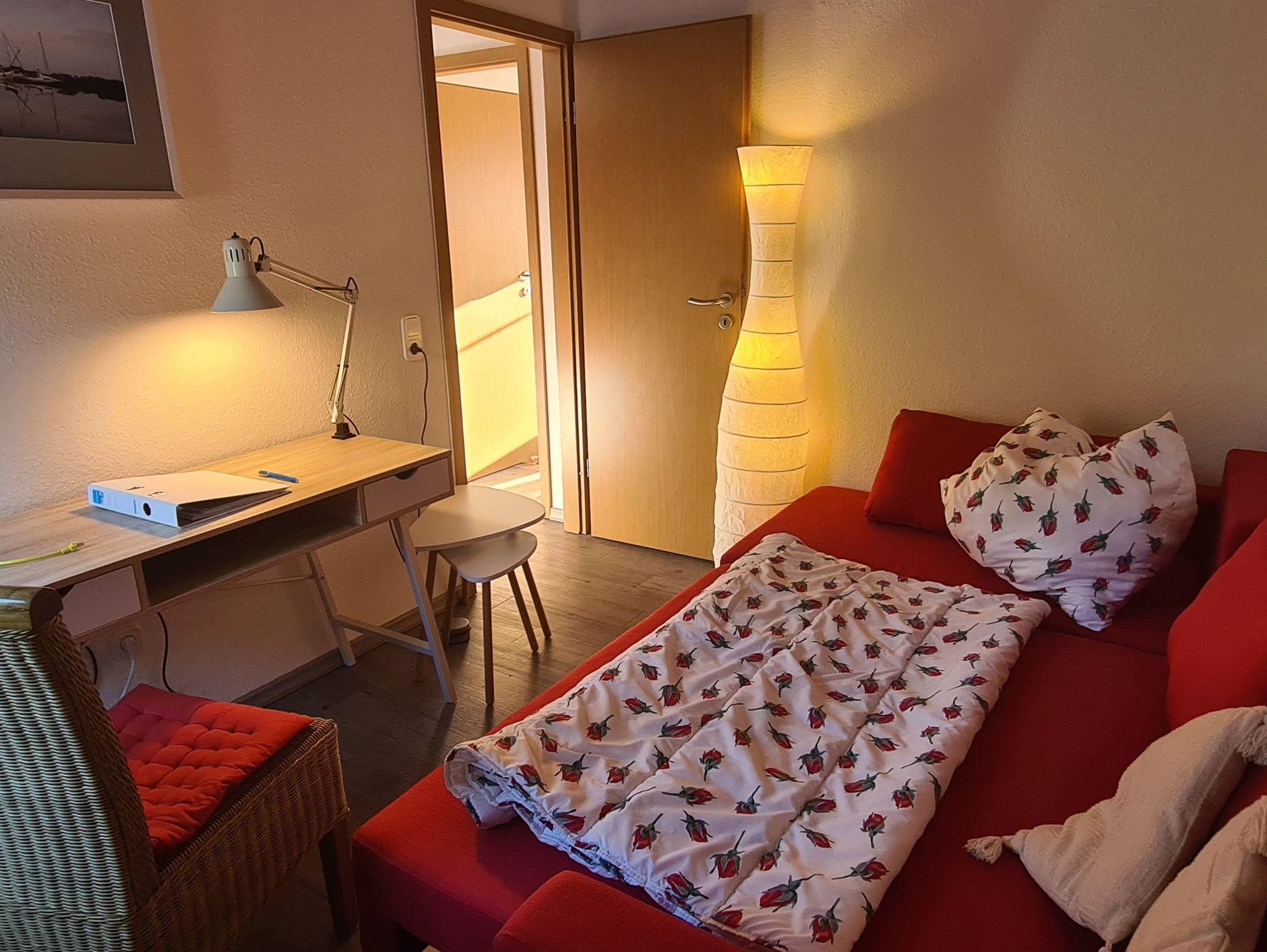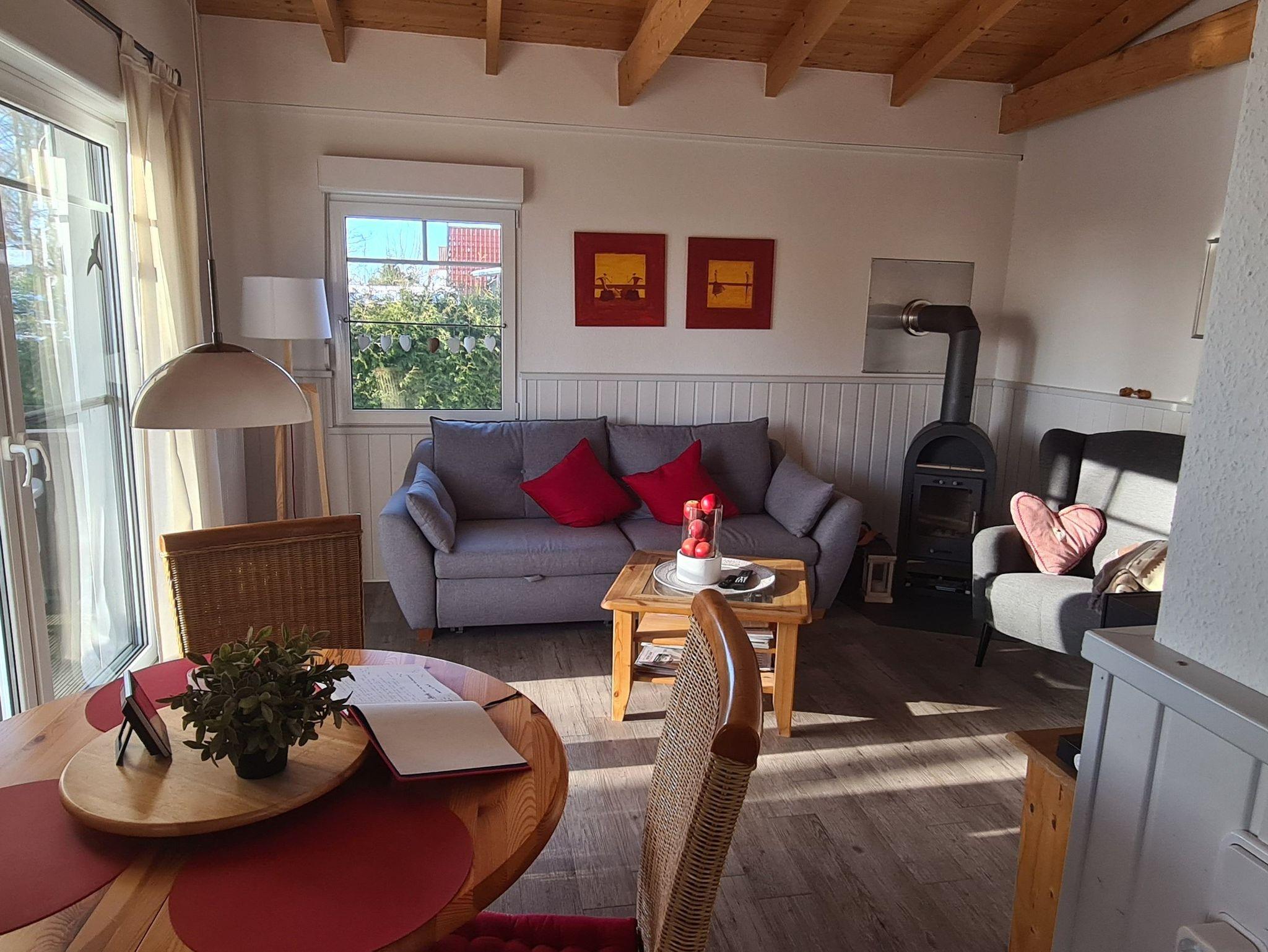 Das Ferienhaus verfügt über ein komfortables Schlafzimmer mit einem hochwertigen Boxspringbett sowie ein kleines Gästezimmer, das flexibel als zweites Schlafzimmer, Kinderzimmer oder Rückzugsort genutzt werden kann. Das Gästezimmer ist mit einem ausziehbaren Schlafsofa und einem kleinen Schreibtisch ausgestattet perfekt für Mitreisende oder gelegentliche Arbeiten. (BITTE TEILEN SIE UNS BEI BUCHUNG KURZ MIT, OB SIE DAS GÄSTEBETT AUCH MIT BETTWÄSCHE BEZOGEN WÜNSCHEN). Der offene Wohnbereich umfasst eine gemütliche Sitzecke mit ausziehbarem Doppelsofa, einen Lesesessel und eine Küche mit Esstisch. Das Badezimmer ist modern gestaltet und mit Dusche und WC ausgestattet.