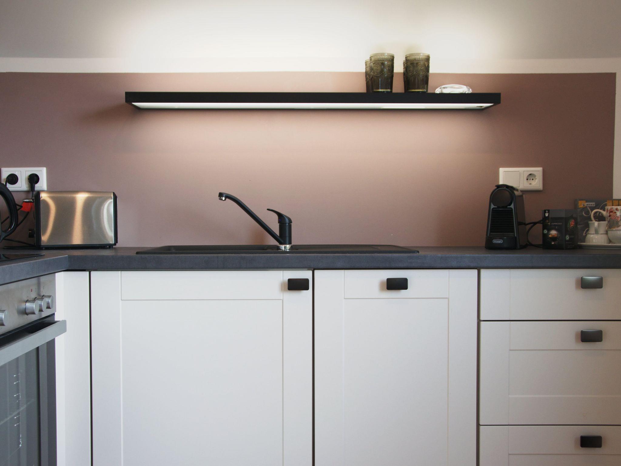 Die Ferienwohnung ist mit allen wichtigen Dingen ausgestattet. Die Küche beinhaltet ein komplettes Sortiment an Geschirr und alltäglichen Haushaltshelfern wie ein Wasserkocher, Toaster, Backofen & Spülmaschine sowie eine Kapsel-Kaffeemaschine.