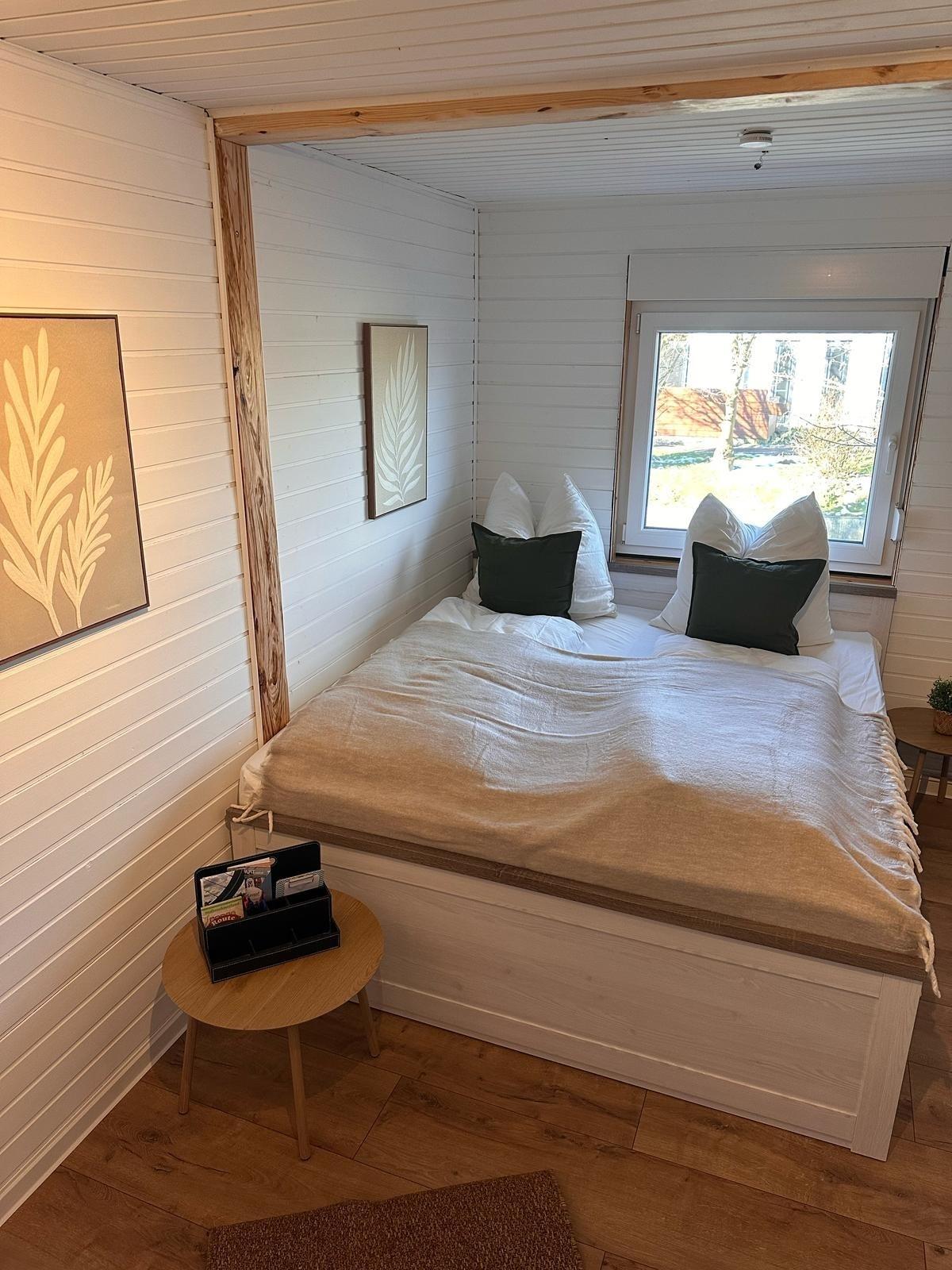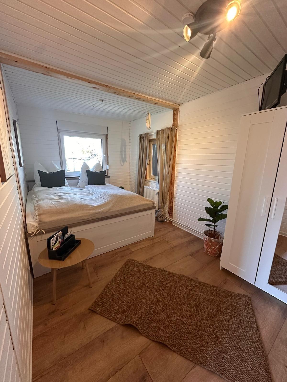 Unsere gemütliche Unterkunft bietet Platz für Paare und kleine Familien. Im Schlafzimmer finden Sie ein bequemes Ehebett. Das Schlafzimmer bietet ebenfalls Platz für ein Zustellbett/Babybett. Eine kleine, schnuckelige Küche lädt zum gemeinsamen Kochen ein, und das Badezimmer ist modern und praktisch gestaltet. Dein Vierbeiner ist bei uns ebenfalls herzlich willkommen. Das große eingezäunte Grundstück bietet eurem Vierbeiner viel Auslauf.