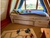 Freshly renovated holiday home in a dream location for the whole family! Everyone gets their money's worth here. The large property with its own garden and climbing frame makes it ideal for families with children. Your own rowing boat is right in front of the terrace, from which you can experience a wonderful sunset. The grill and fireplace invite you to relax. In the middle of a holiday home settlement, which is very quietly located in the East Frisian nature, you can relax in a natural way. The holiday home also offers two kayaks with which you can explore the canals and lakes. Fishing, swimming, surfing, hiking and cycling to the "Großes Meer" nature reserve are great ways to spend your time. The house has a master bedroom with a double bed and a children's bedroom with 2 beds. This room is perfectly equipped for the little ones with a children's table, toys, painting supplies and books: We have lovingly furnished it and our 4-year-old son thinks it's great :-)
