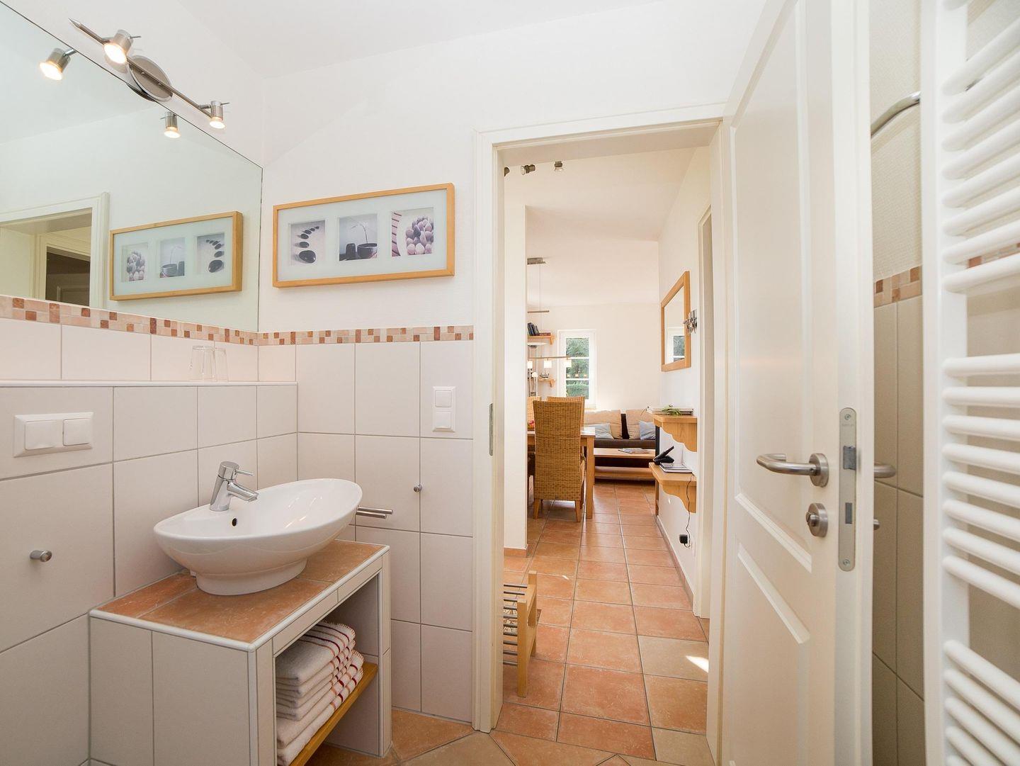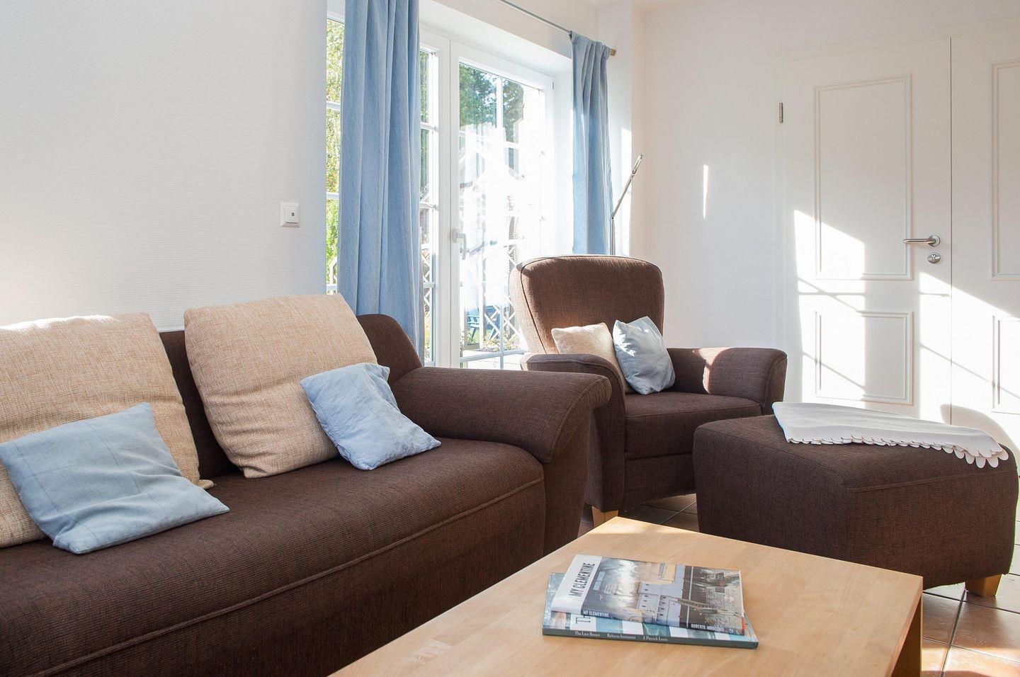 Die Wohnräume sind großzügig und komfortabel eingerichtet, inklusive einer modernen, komplett ausgestatteten Küchenzeile, die mit Geschirrspüler, Backofen, Ceranfeld und Mikrowelle keine Wünsche offenlässt. Alle Bäder sind mit Fußbodenheizung und Handtuchheizkörpern ausgestattet. Im Wohnzimmer tragen Fernseher, Telefon, Stereoanlage mit DVD-Player sowie ein Internet-Anschluss zur Unterhaltung bei. Es gibt ein bis zwei Schlafräume, sowohl mit Doppelbett als auch mit Einzelbetten. Auch Saunafreunde kommen nicht zu kurz: Die im Nebengebäude auf dem Grundstück befindliche Sauna ist ganzjährig für Sie betriebsbereit. Ebenfalls im Nebengebäude befinden sich eine Waschmaschine und ein Trockner.