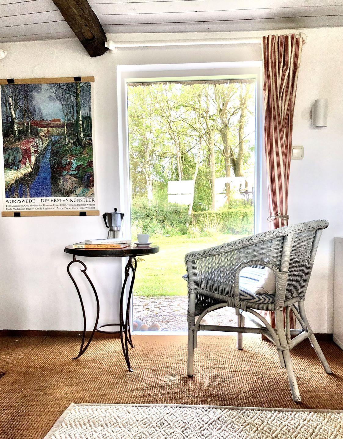 Die Kate hat eine Wohnfläche von 62m², die sich aber wie 100m² anfühlen. Folgende Räumlichkeiten sind vorhanden: 2 Schlafzimmer, 1 Wohn-/Esszimmer mit offenem Kamin, eine kleine Küche und ein kleines Duschbad. Unsere kleine Kate ist sehr urig und gemütlich: kleine Fenster, alte Friesenfliesen und niedrige Deckenhöhen. Auf der Südwestseite grenzt der Garten an ein Nachbargrundstück, das mit einem im Gutshausstil gehaltenen kleinen Haus bebaut ist. 2 PKW-Stellplätze sind vorhanden.