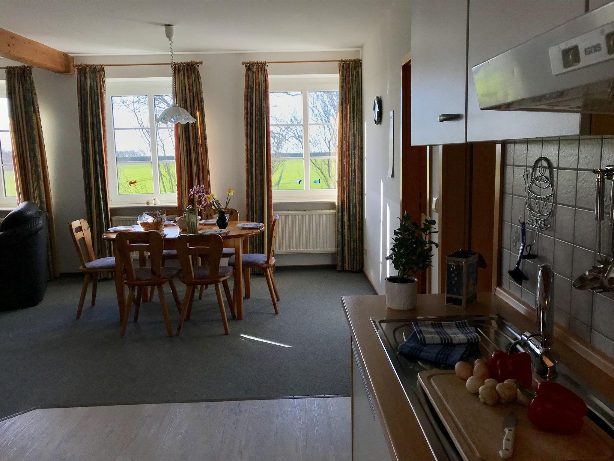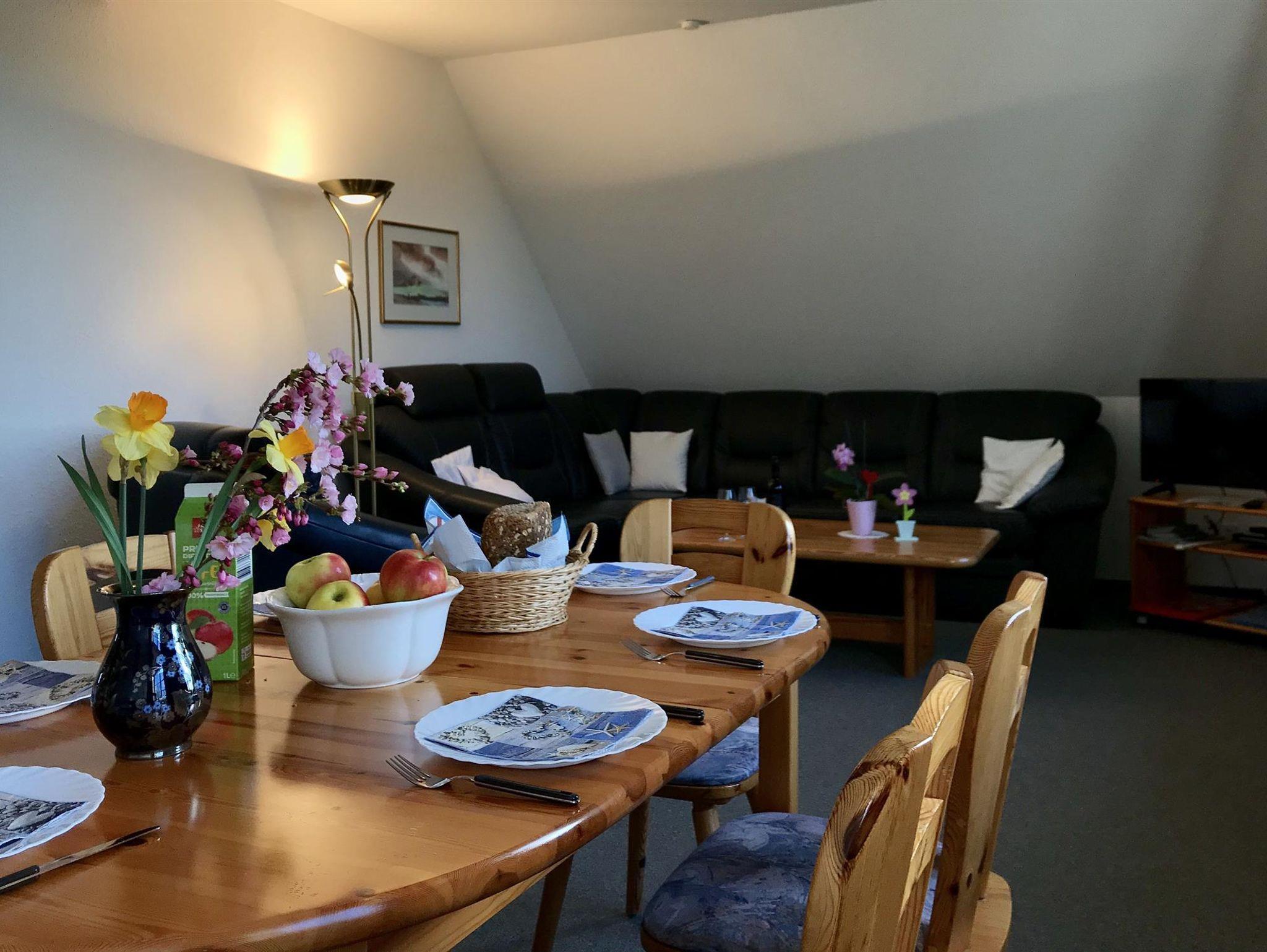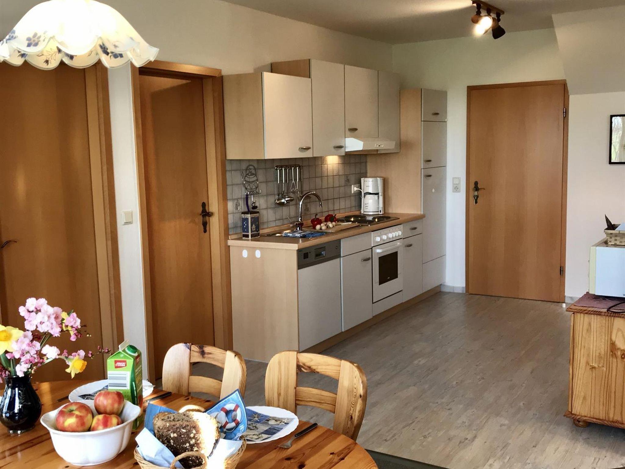 Die Ferienwohnung bietet 3 Schlafzimmer auf 65 qm, ein Duschbad und ein großzügigen Wohn-, Koch- und Essbereich. Kinderbetten oder Zustellbetten lassen sich zusätzlich unterbringen. Die Küchenzeile ist komplett ausgestattet (Kühlschrank,Herd, Microwelle, Geschirrspühler, etc.). Sat-TV ist vorhanden.Waschmaschine und Wäschetrockner stehen bei Bedarf zur Verfügung.