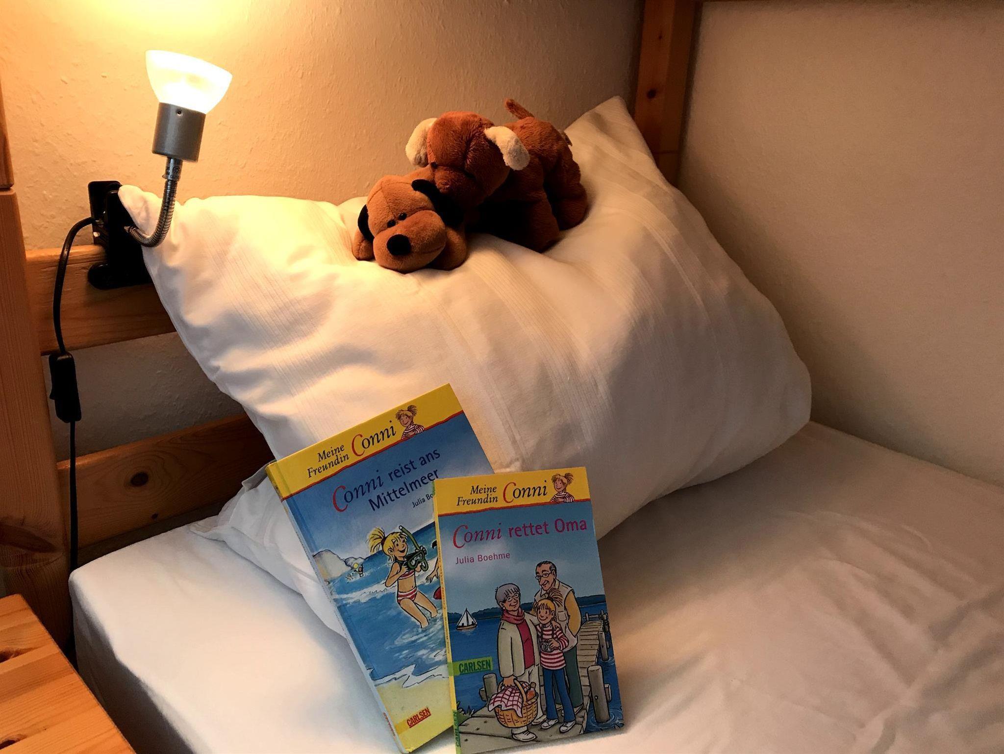 Außerdem haben wir Ponys und einen Esel, Ziegen, Kaninchen und viele Katzen.