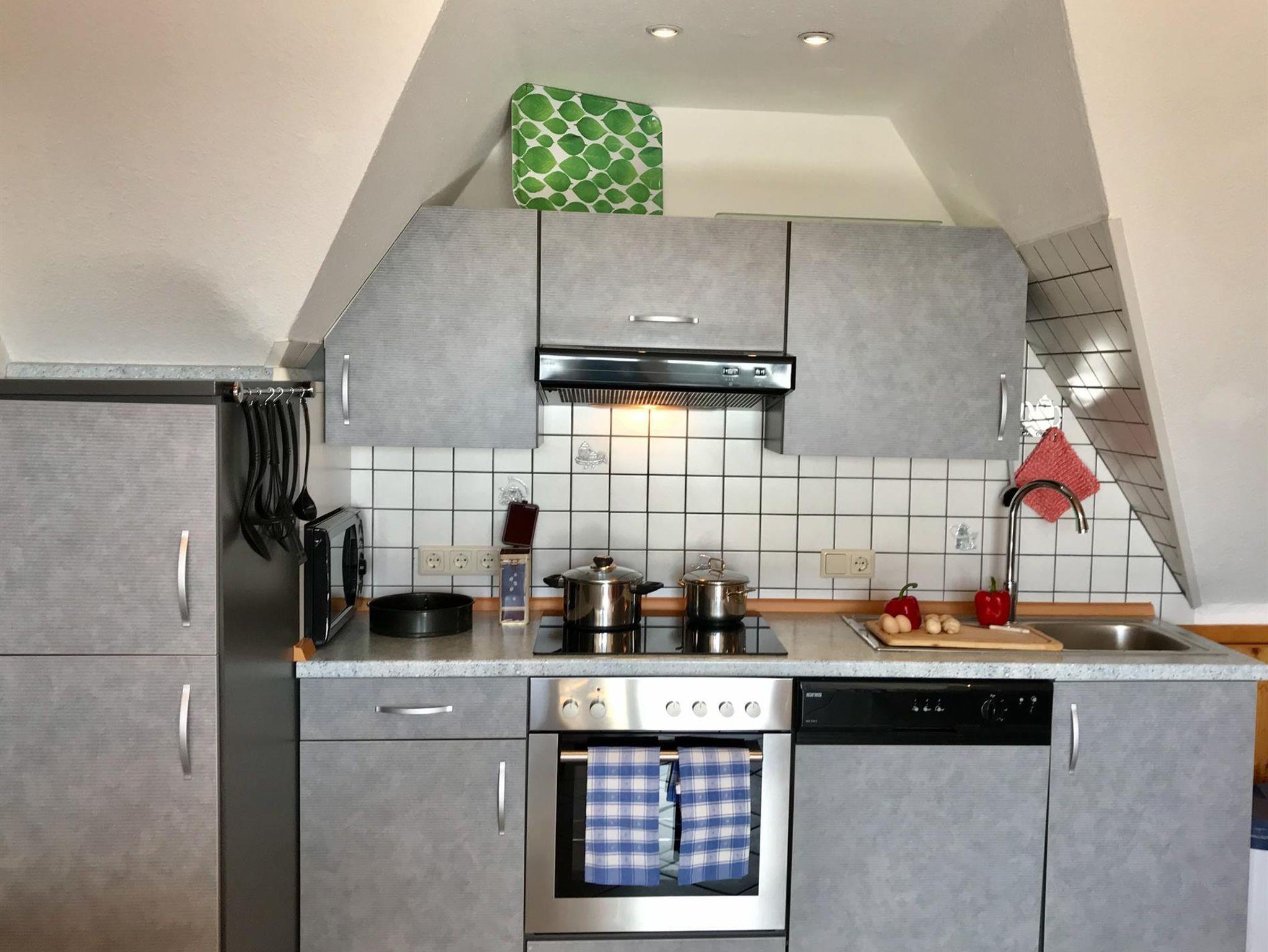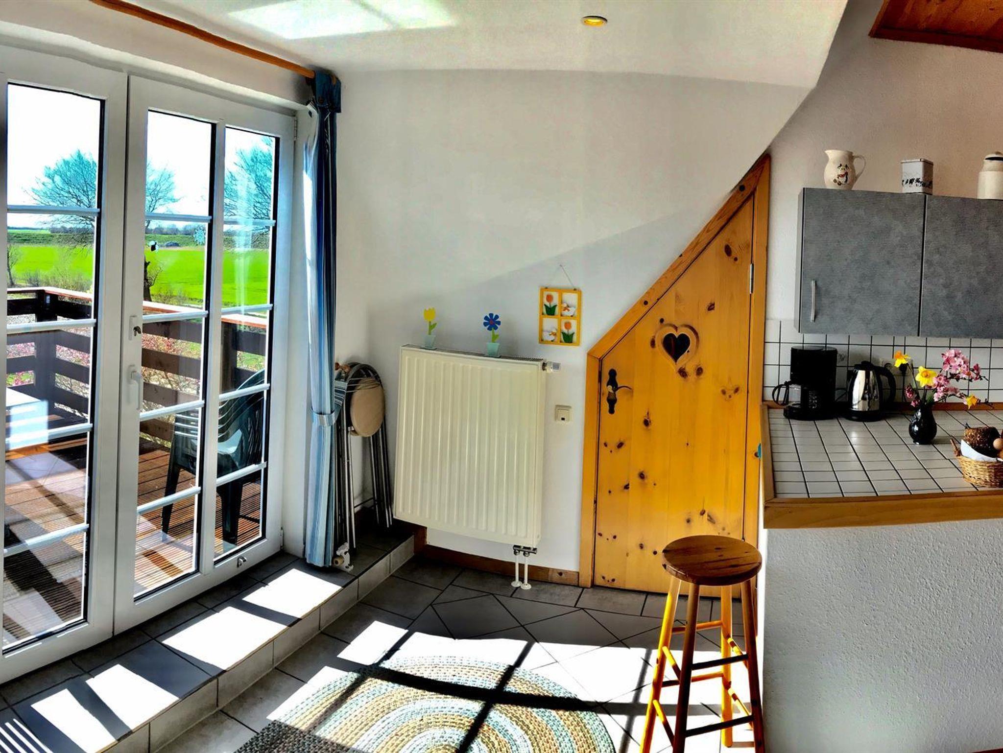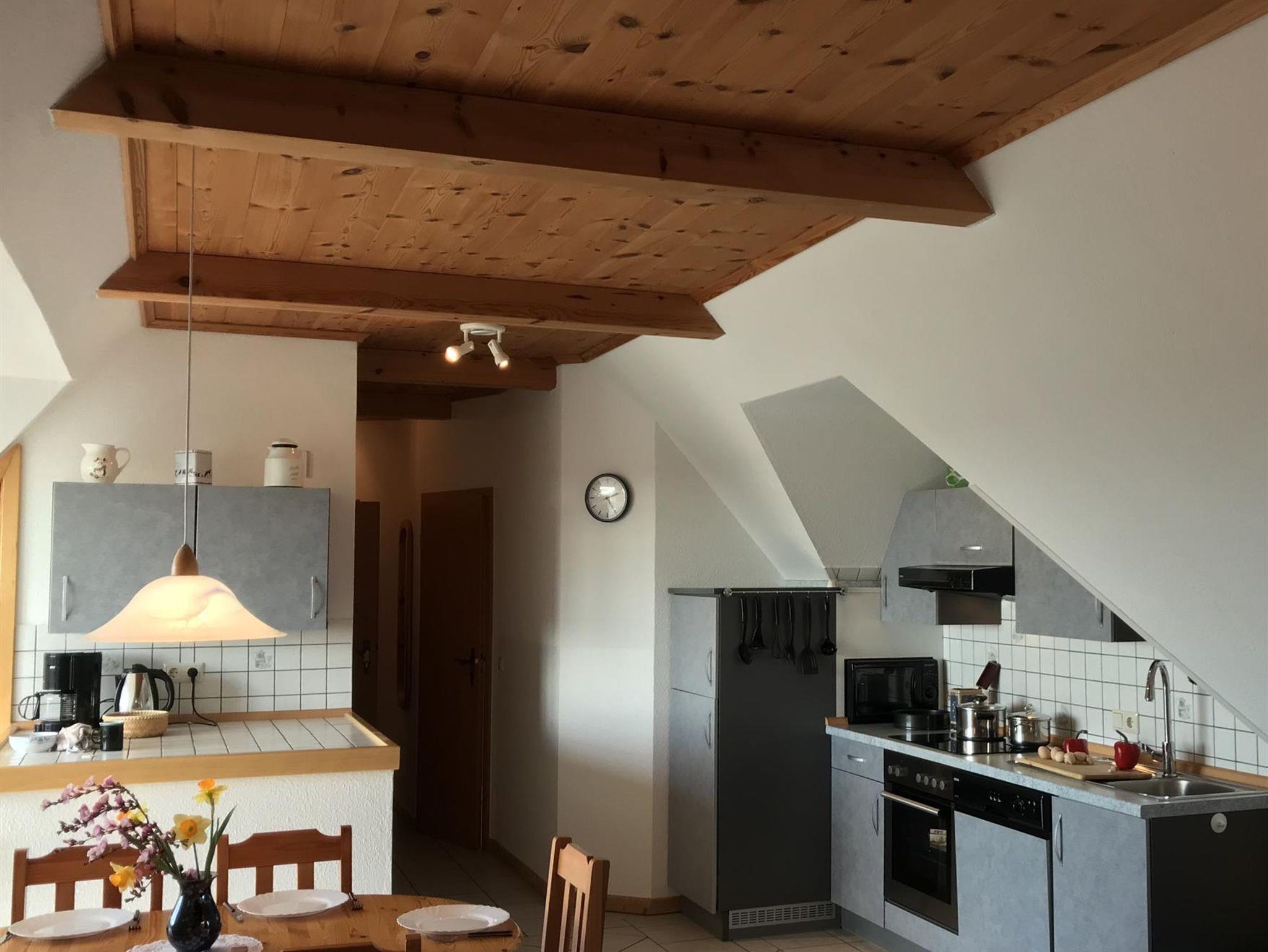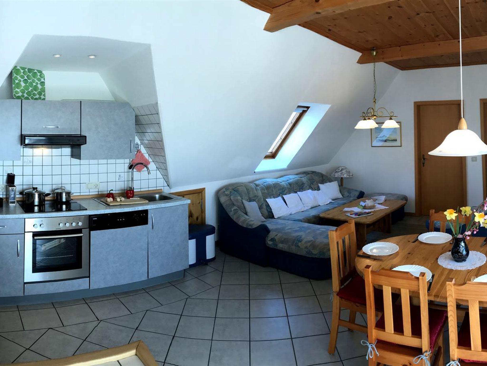 Die Ferienwohnung bietet 3 Schlafzimmer auf 80 qm, ein Duschbad, ein zweites Gäste WC und ein großzügigen Wohn-, Koch- und Essbereich. Kinderbetten oder Zustellbetten lassen sich zusätzlich unterbringen. Des Weiteren verfügt die Wohnung über eine Dachterrasse mit Weitblick über die Felder. Die Küchenzeile ist komplett ausgestattet (Kühlschrank,Herd, Microwelle, Geschirrspühler, etc.). Sat-TV ist vorhanden.Waschmaschine und Wäschetrockner stehen bei Bedarf zur Verfügung.