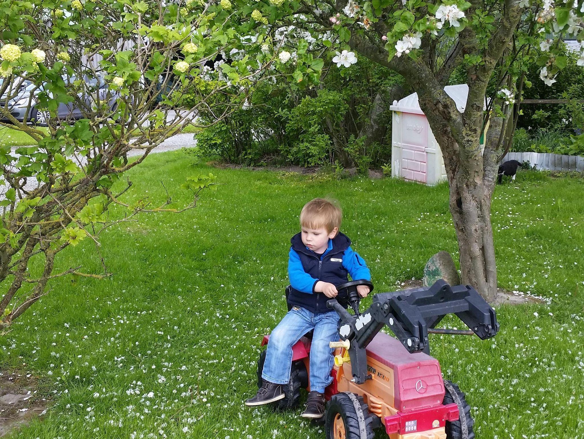 Außerdem haben wir Ponys und einen Esel, Ziegen, Kaninchen und viele Katzen.